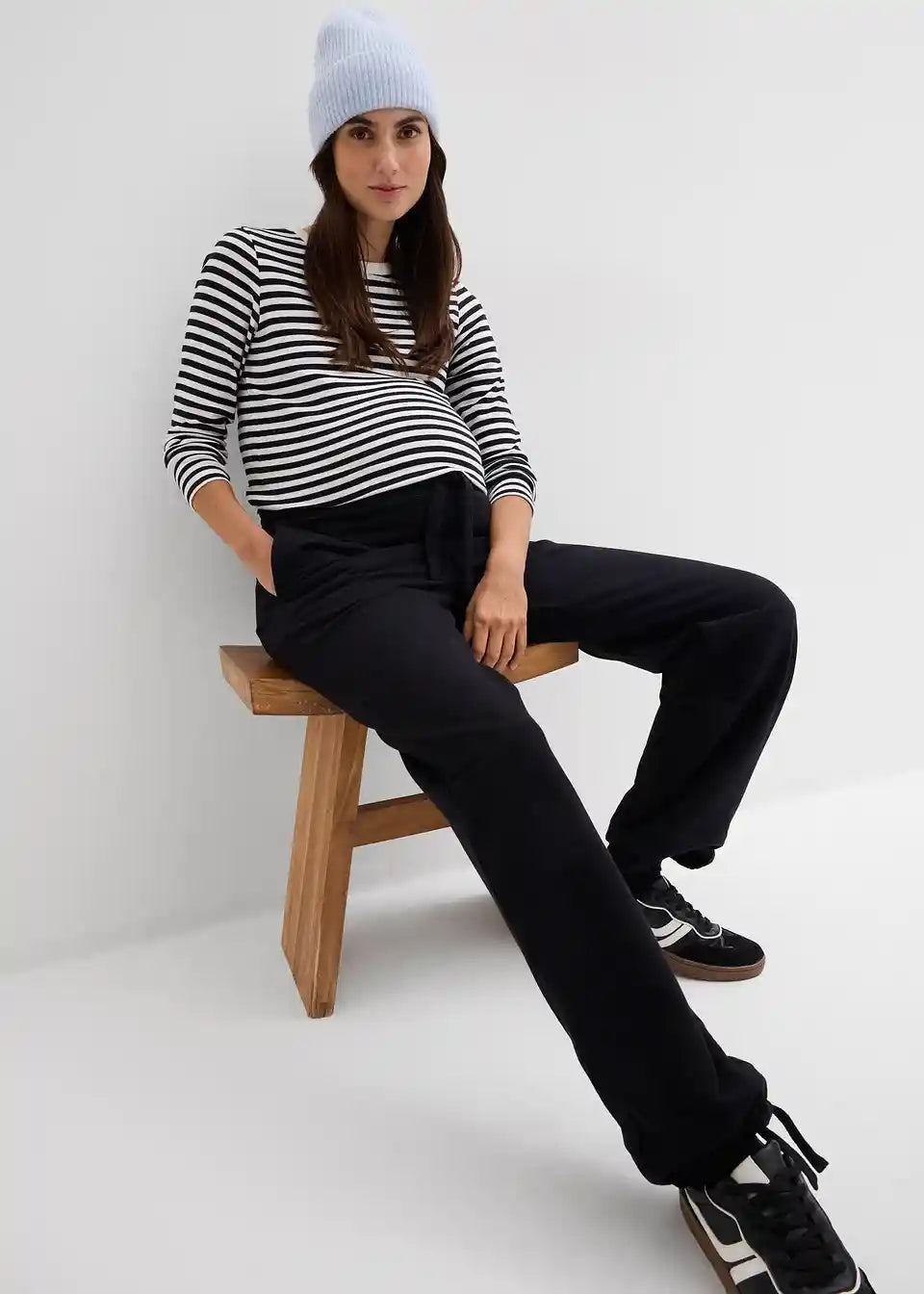 Nosečniške hlače iz trikoja z nastavljivo širino spodnjega roba iz čistega ekološkega bombaža