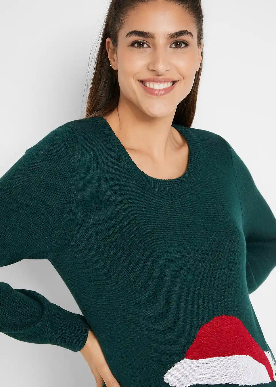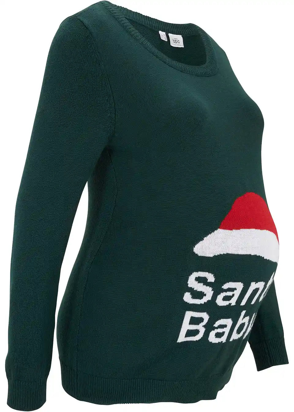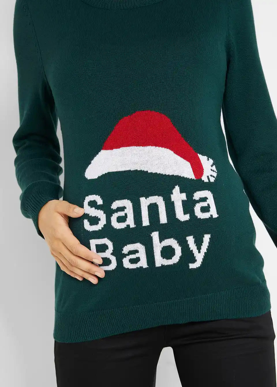 Nosečniški pulover z božičnim potiskom je idealen za obdobje nosečnosti. Zaradi elastičnega materiala se prilagodi rastočemu trebuščku.