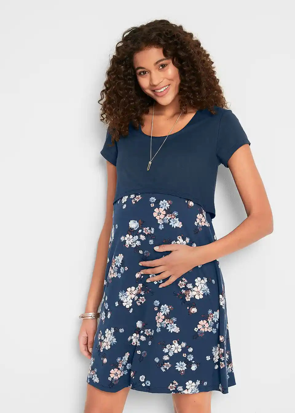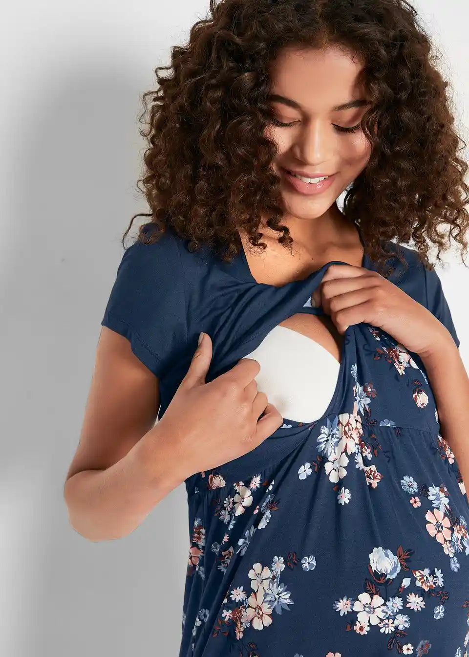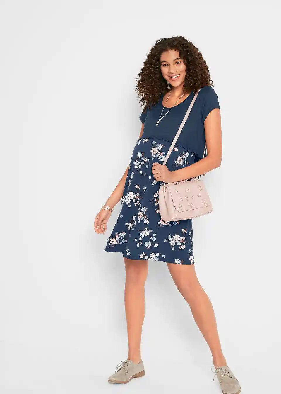 Oblačilna obleka je primerna za nošenje skozi celotno nosečnost. Nosečniška obleka iz viskoze z cvetličnim vzorcem je idealna za poletne dni. Zahvaljujoč udobnemu materialu se obleka za nosečnost popolnoma prilagodi rastočemu obsegu trebuha. Zaradi integrirane funkcije dojenja je ta obleka odličen spremljevalec tudi po nosečnosti. Obleko za dojenje po nosečnosti naročite eno številko manjšo