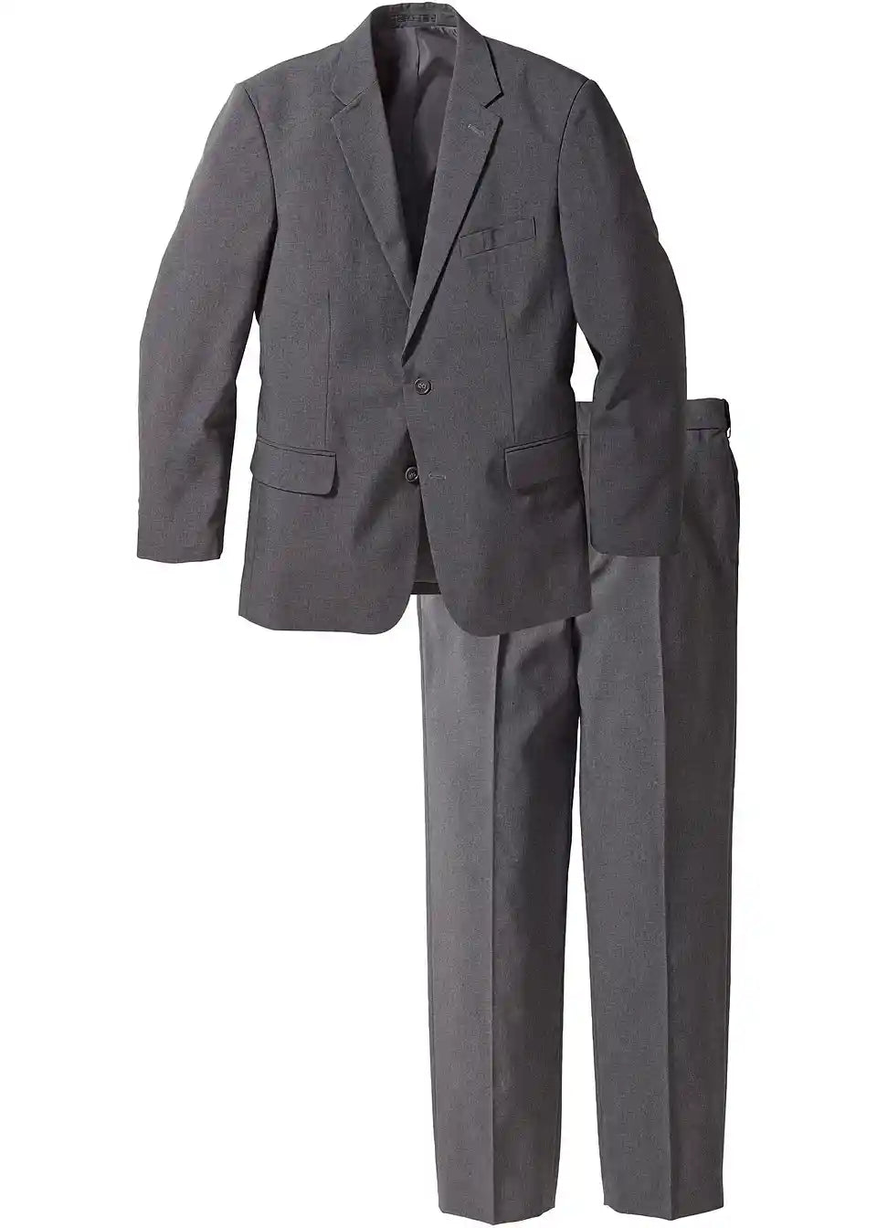 Ta dvodelna moška obleka znamke bpc selection je popolna garderoba za slovesne priložnosti in poslovna srečanja. Suknjič se odlikuje po klasični obliki z 2 gumboma in reverjem. Ima dve žepi s preklopom v predelu bokov ter prsni žep. Ustrezne hlače navdušujejo z likanimi robovi. Raztegljiv pas dodatno zagotavlja visoko udobje pri nošenju in optimalno prileganje.