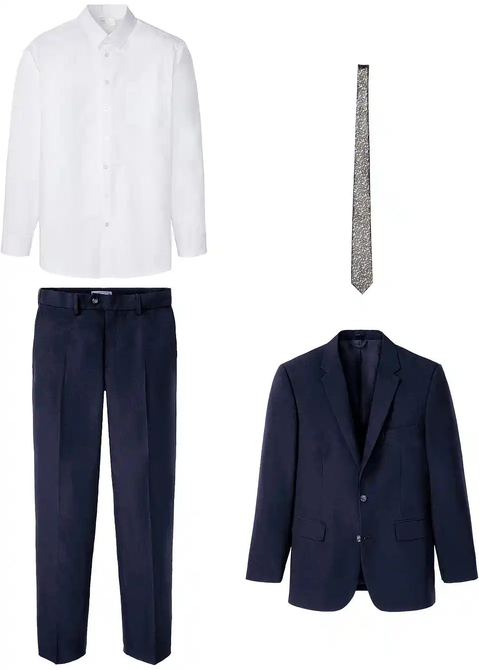 4-delna obleka: suknjič, hlače, srajca in kravata