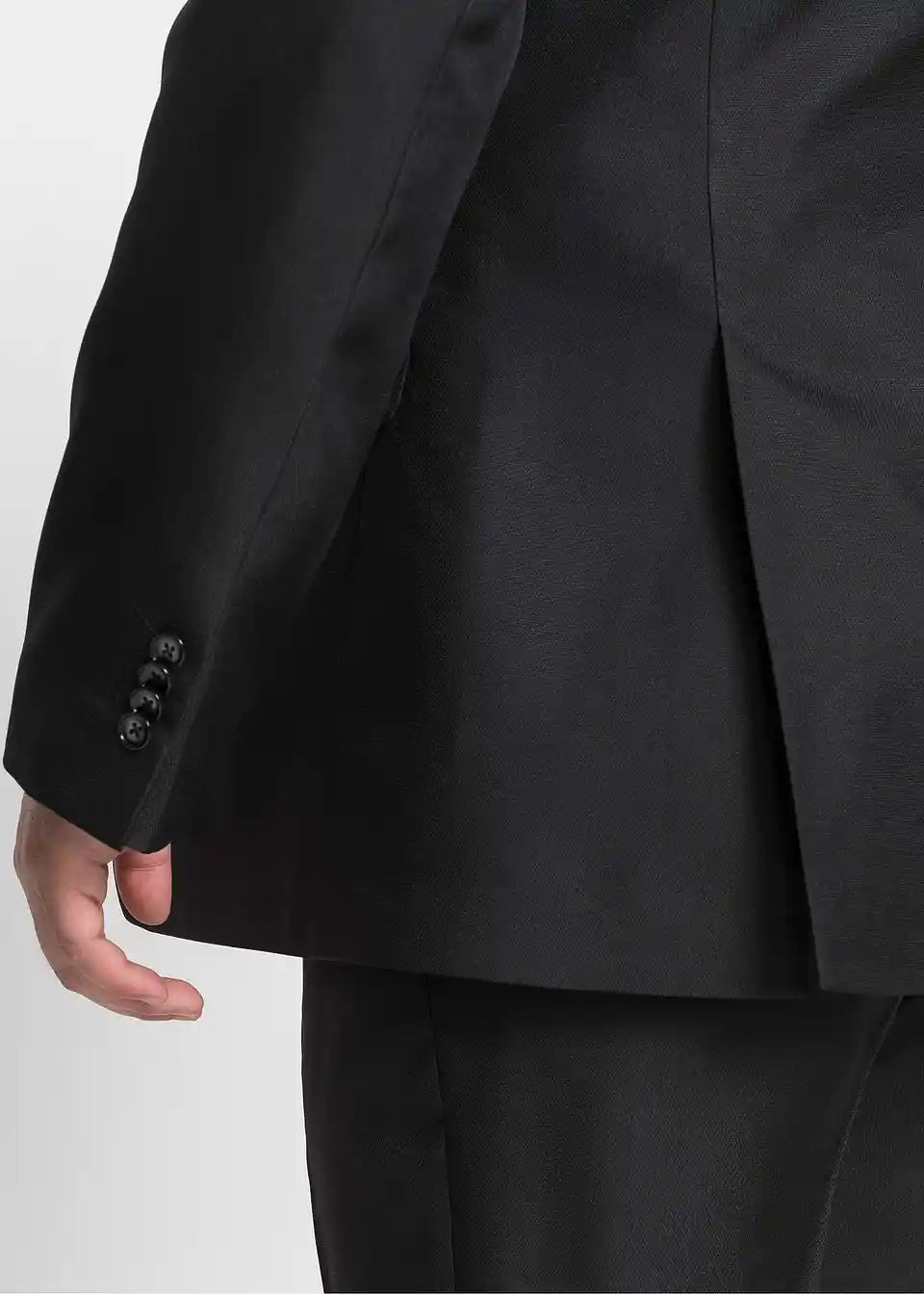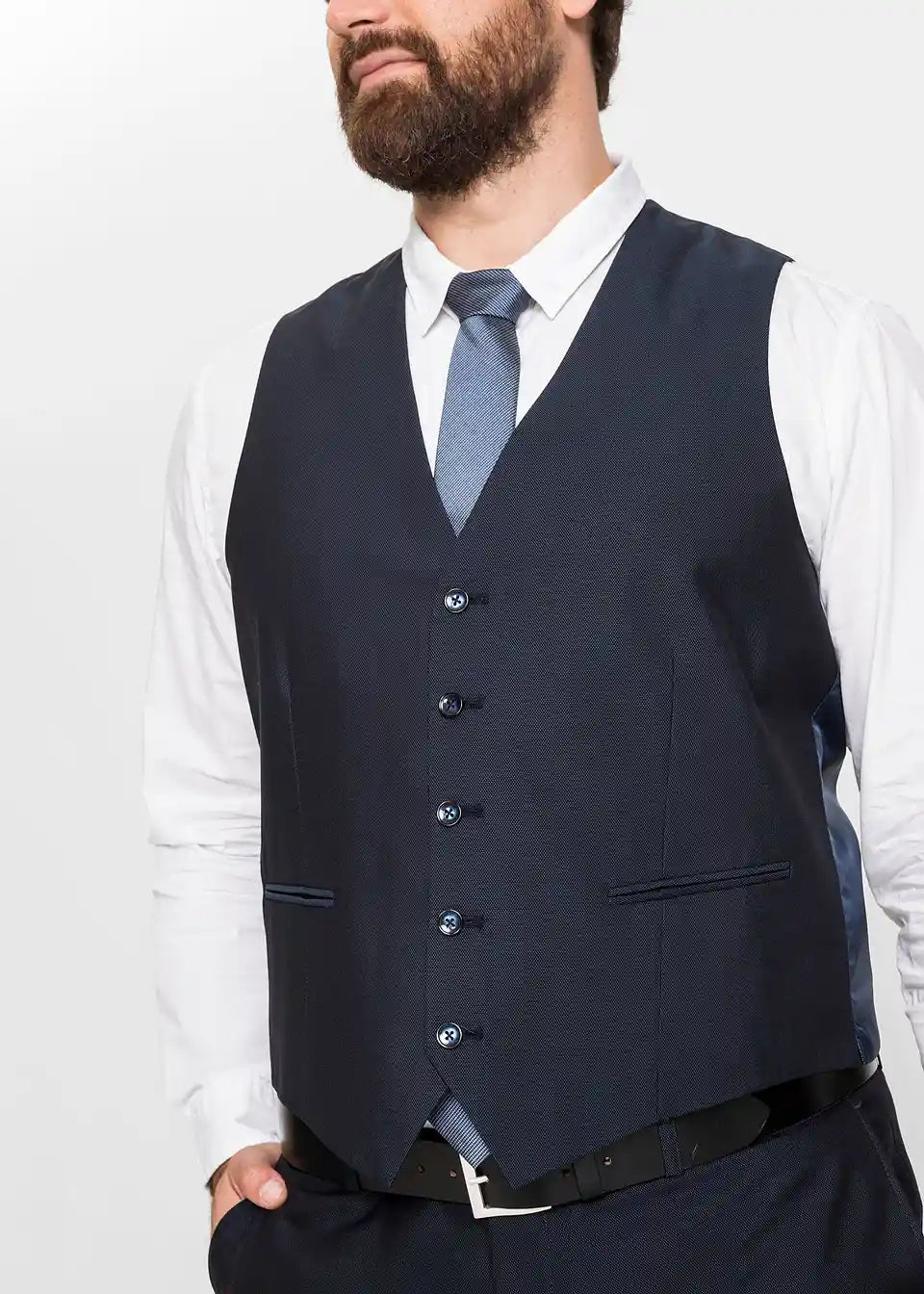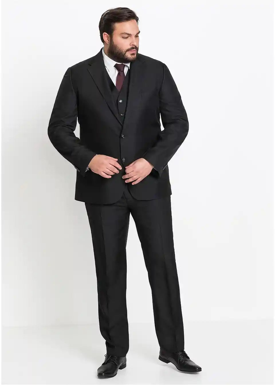 Ta štiridelna moška obleka Regular Fit znamke bpc selection je idealna za slavnostne in formalne priložnosti. Vključuje suknjič, telovnik, hlače in ustrezno kravato. 2-gumbni suknjič prepriča z rever ovratnikom, dvema žepoma s preklopom in prsnim žepom z vgrajenim žepnim robčkom. Telovnik je oblikovan s petimi gumbi in dvema žepoma. Okusen Flatfront dizajn naredi hlače pravi klasik in obleko v Regular Fit udobno obleko.