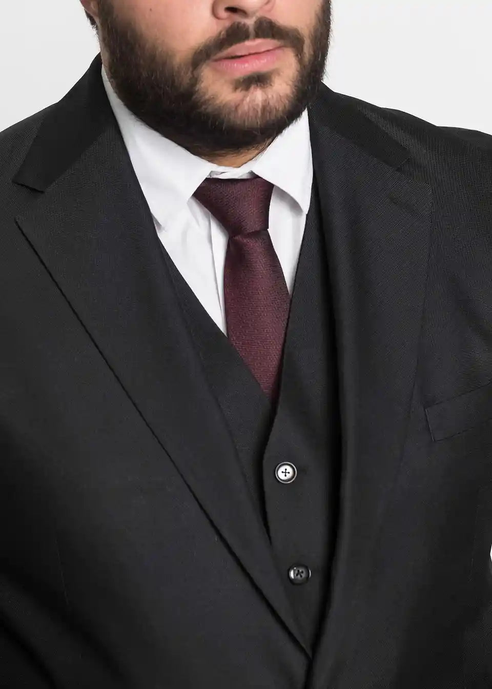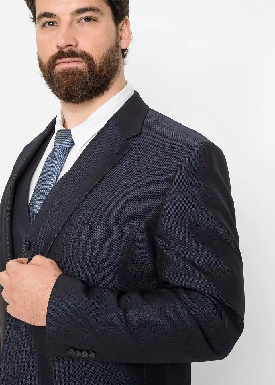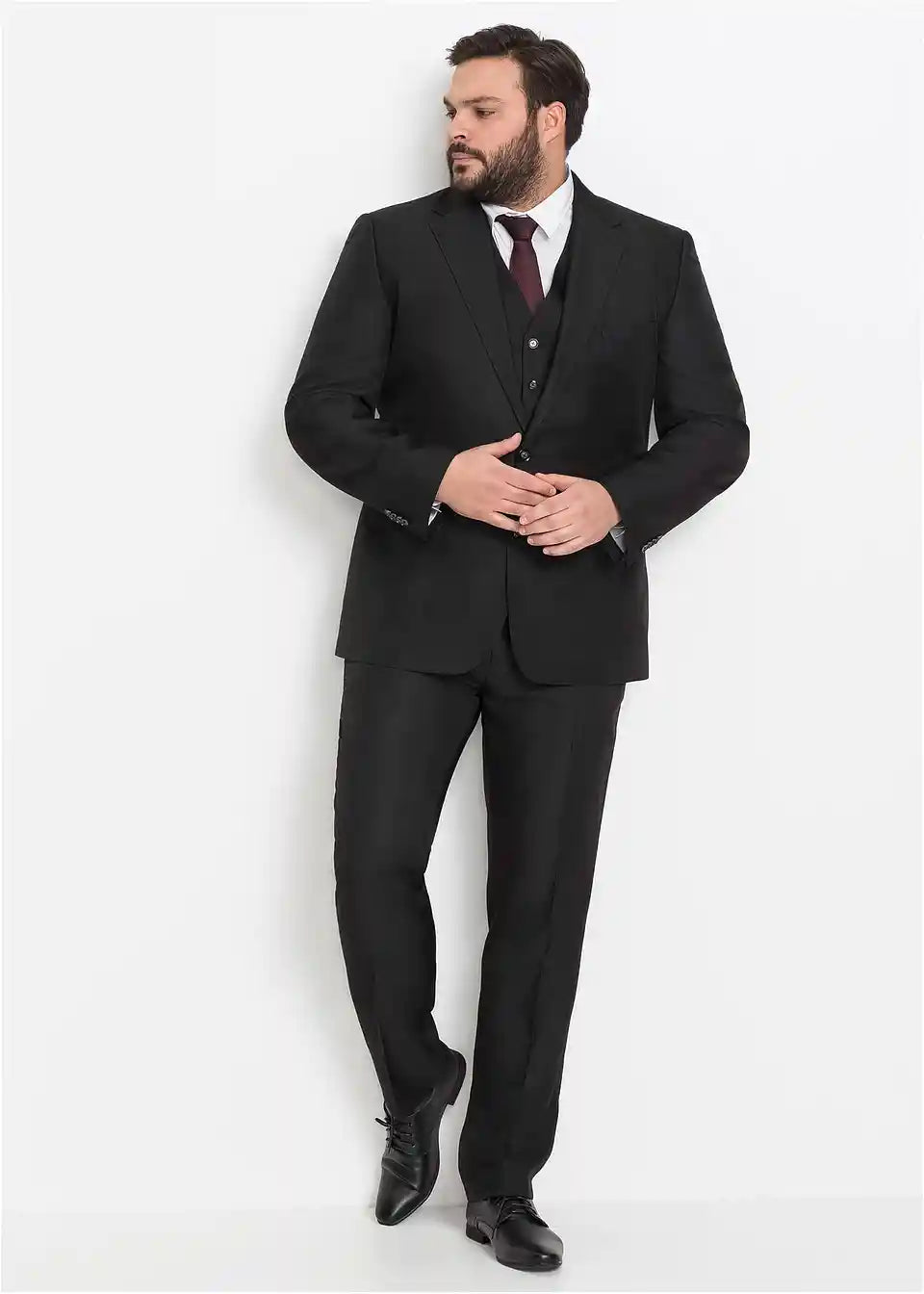 Ta štiridelna moška obleka Regular Fit znamke bpc selection je idealna za slavnostne in formalne priložnosti. Vključuje suknjič, telovnik, hlače in ustrezno kravato. 2-gumbni suknjič prepriča z rever ovratnikom, dvema žepoma s preklopom in prsnim žepom z vgrajenim žepnim robčkom. Telovnik je oblikovan s petimi gumbi in dvema žepoma. Okusen Flatfront dizajn naredi hlače pravi klasik in obleko v Regular Fit udobno obleko.
