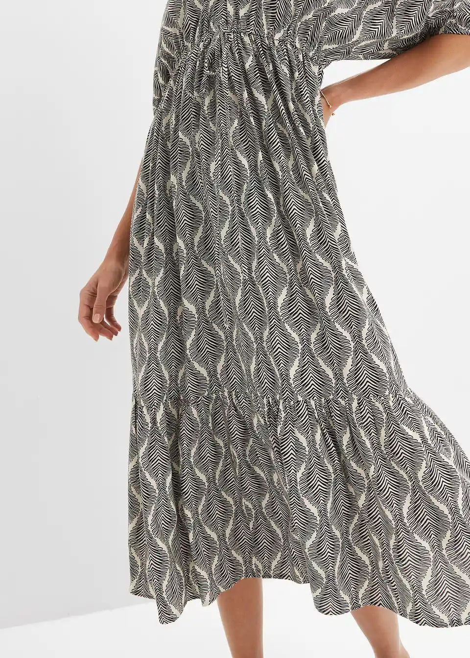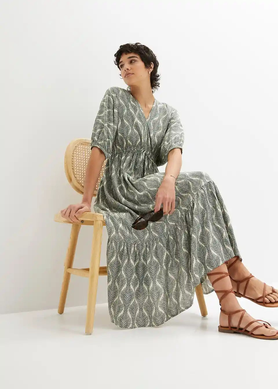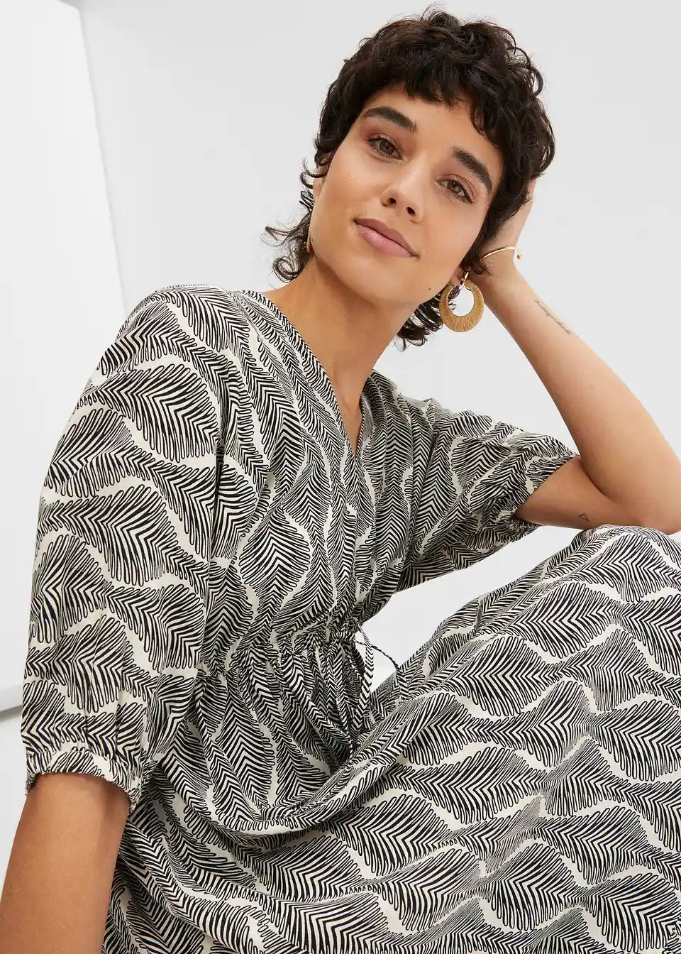 Stilska obleka z netopirskimi rokavi iz trajnostne viskoze.