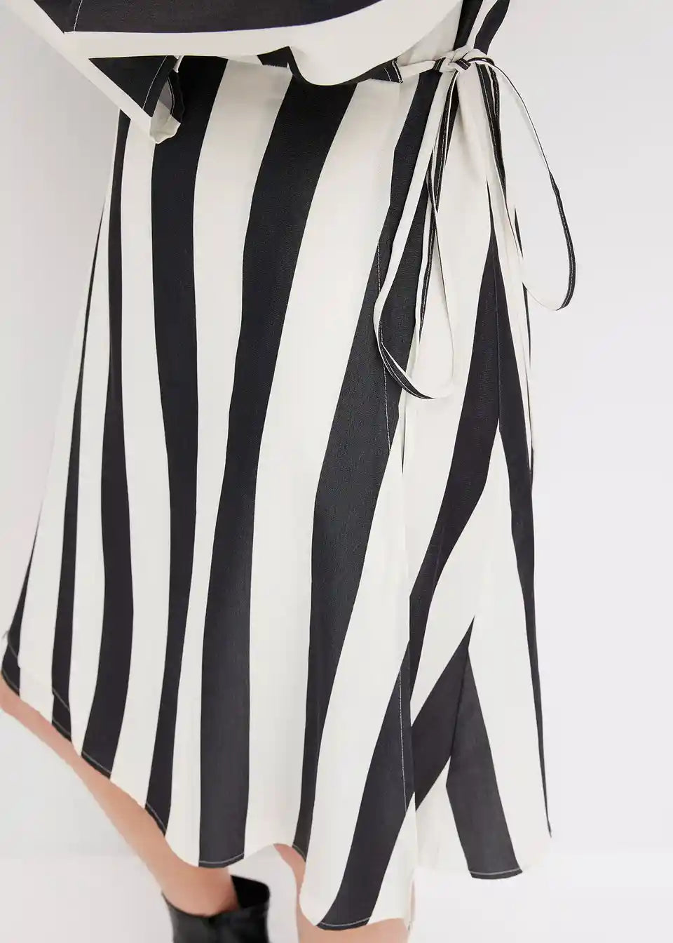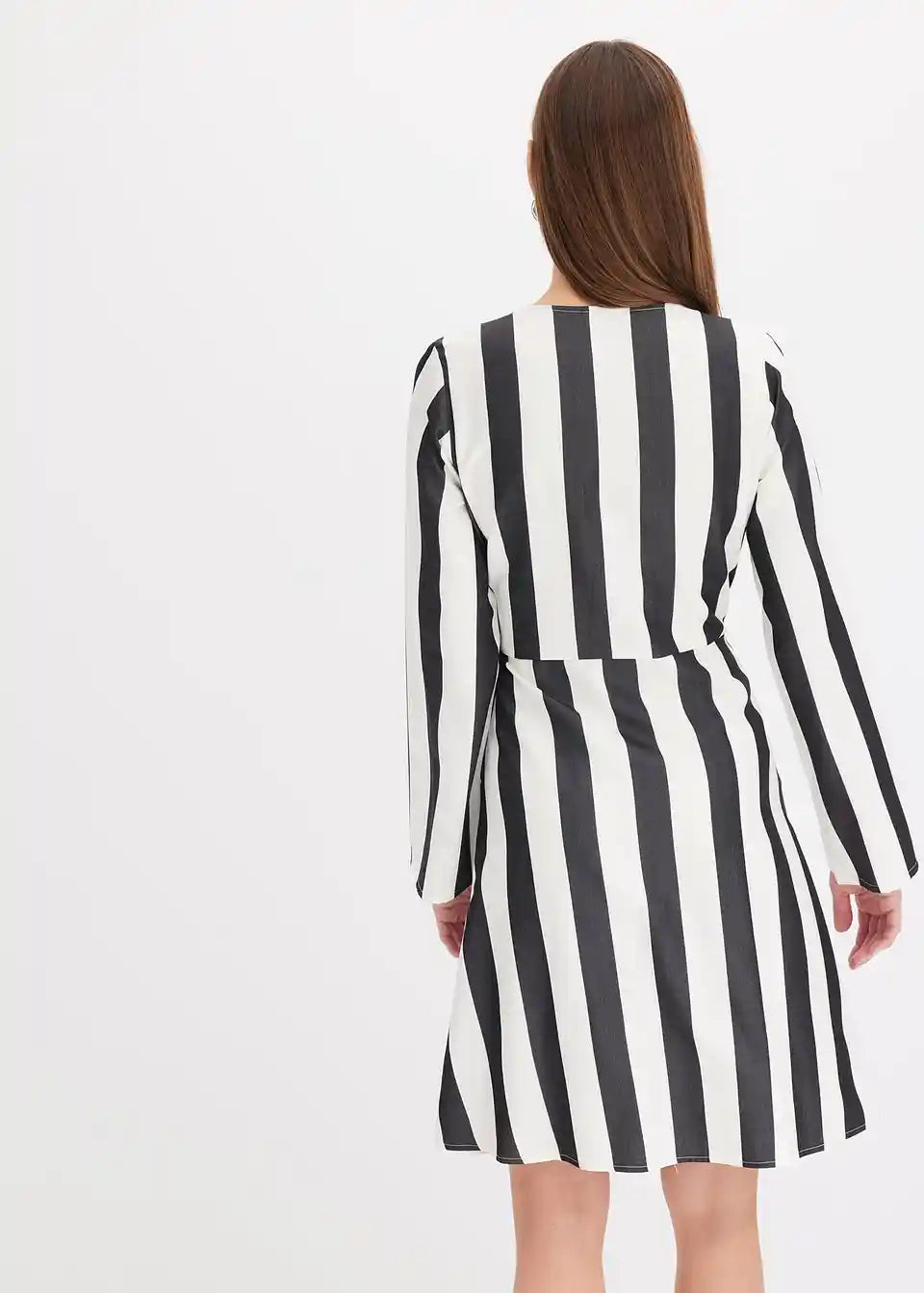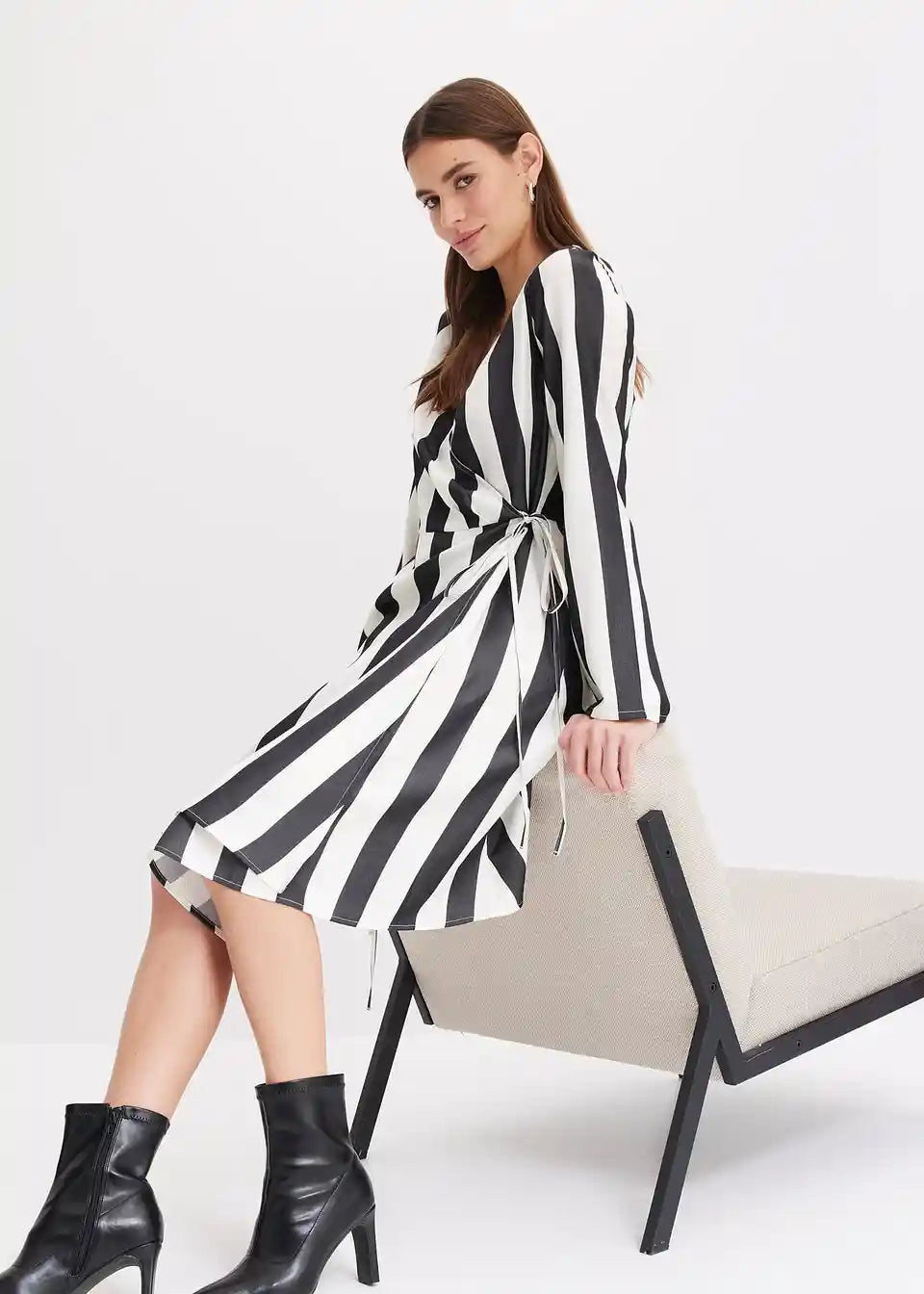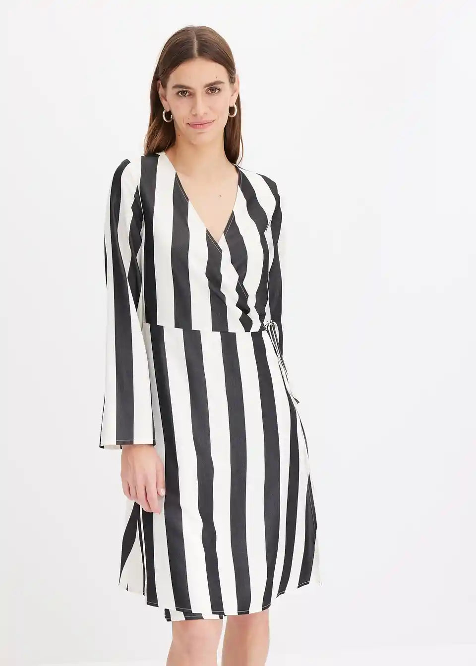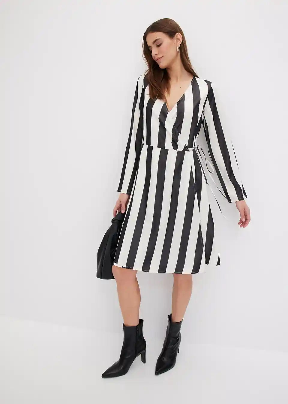 Lepa obleka s črtami, V-izrezom in zavitjem