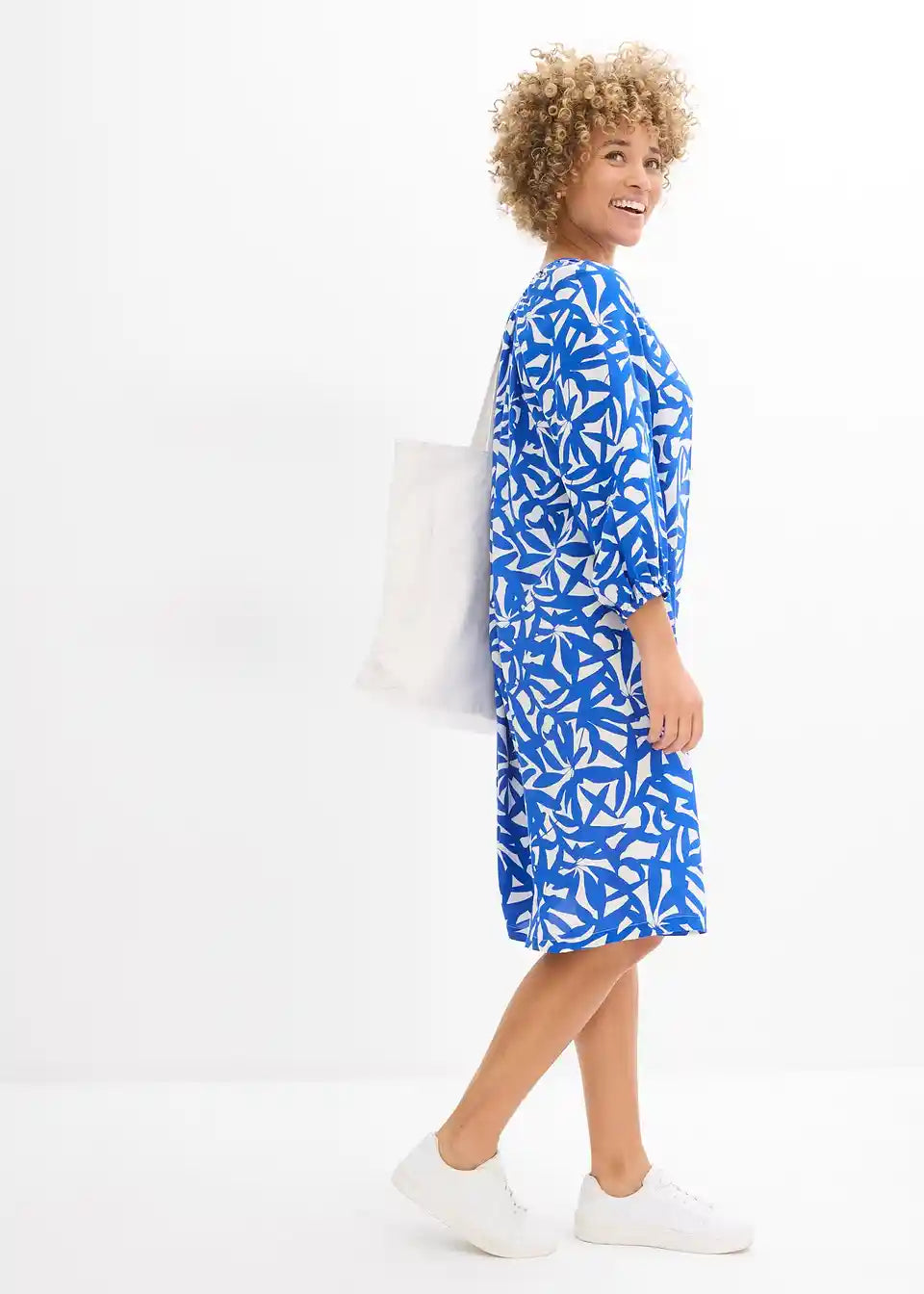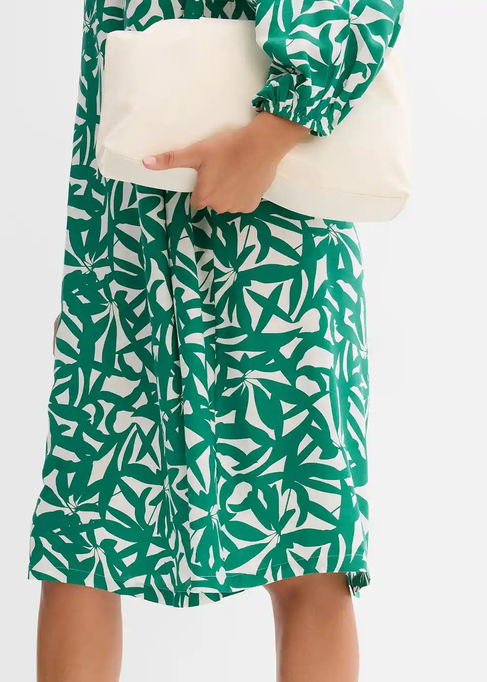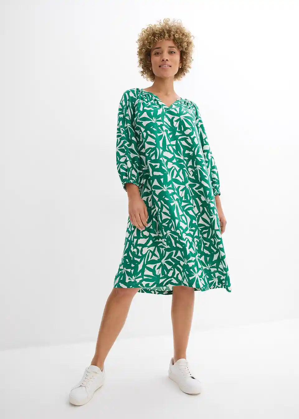 Modna obleka s cvetličnim potiskom in dolžino do kolen