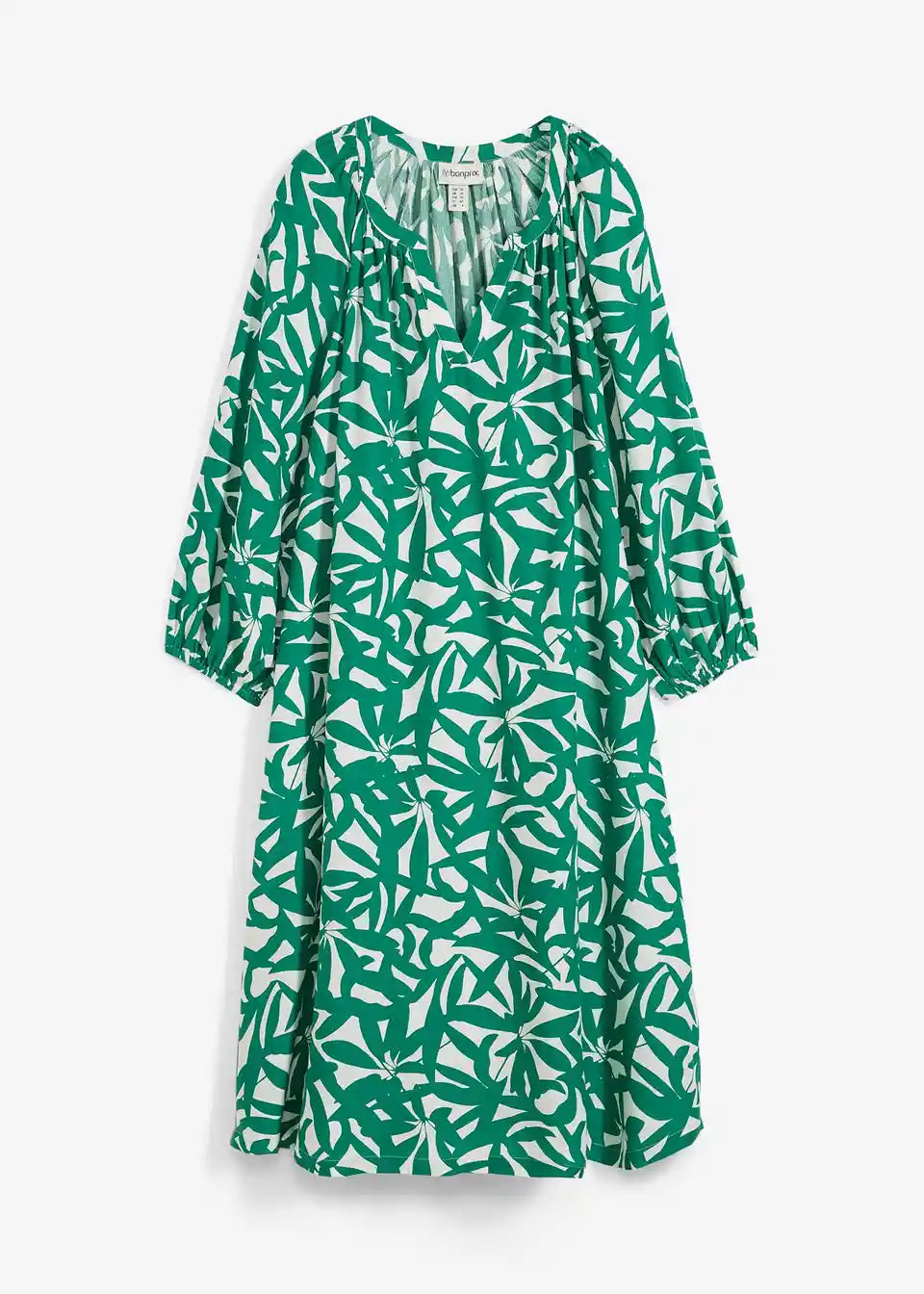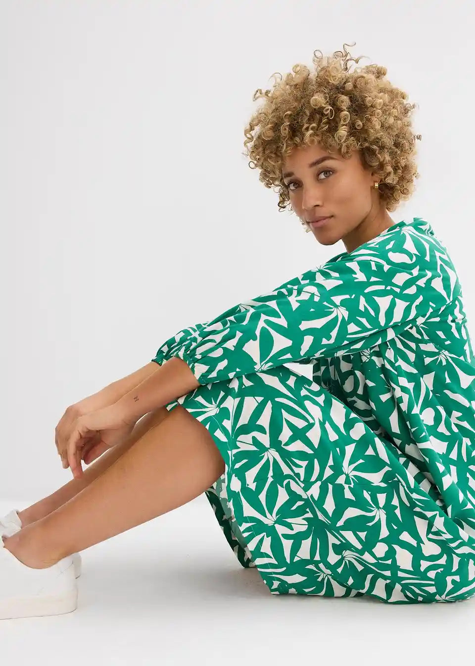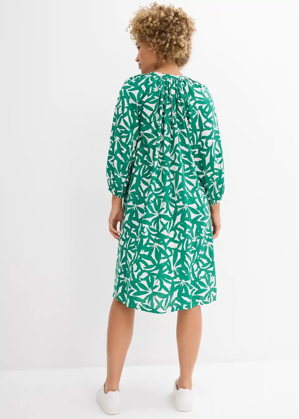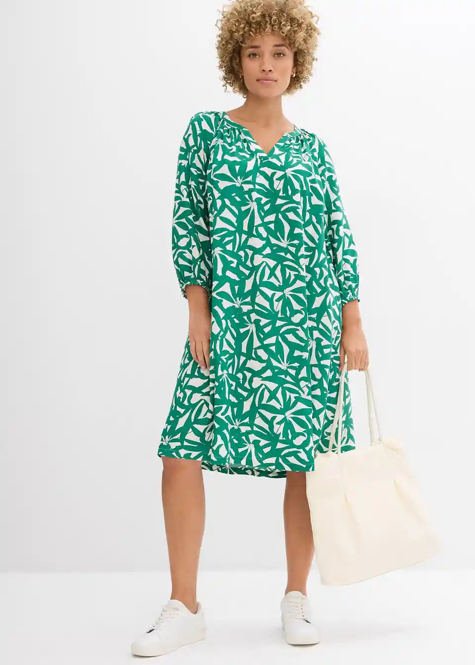 Modna obleka s cvetličnim potiskom in dolžino do kolen