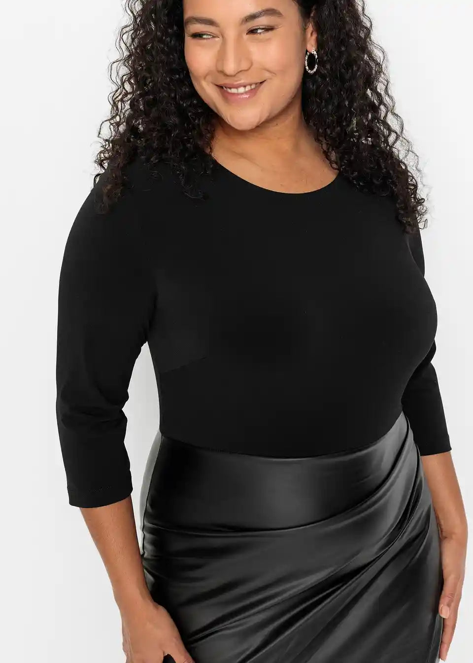 Obleka iz umetnega usnja z zgornjim delom iz jerseyja