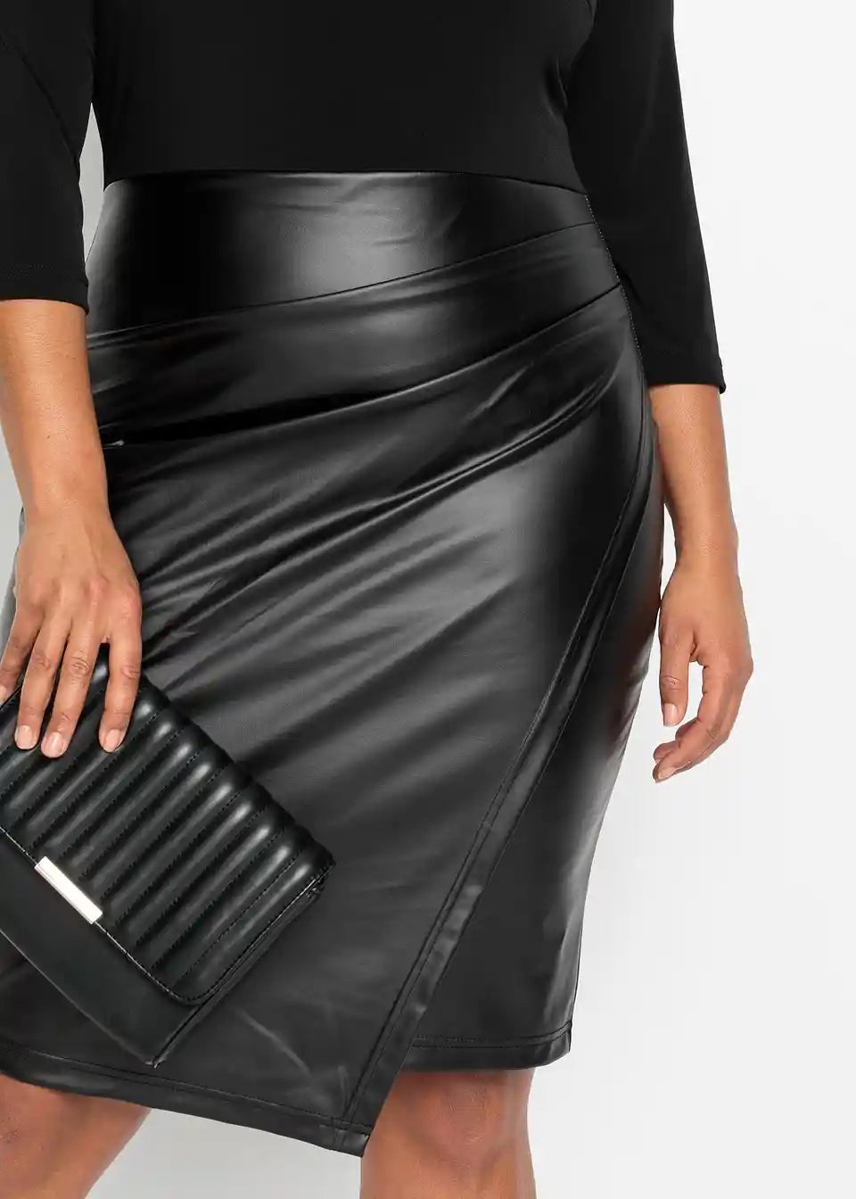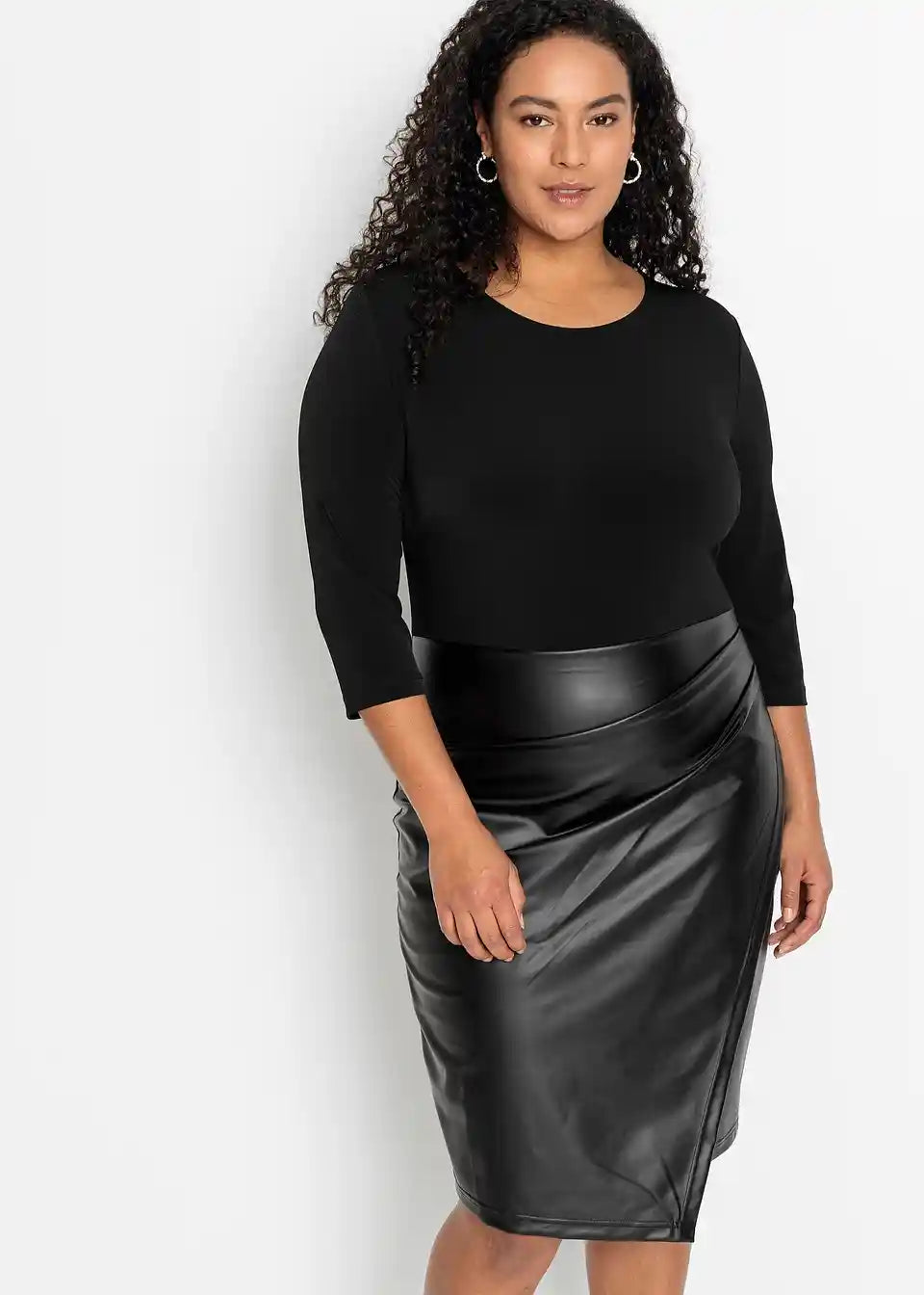 Elegantna obleka z umetno usnje krilom in jersey zgornjim delom