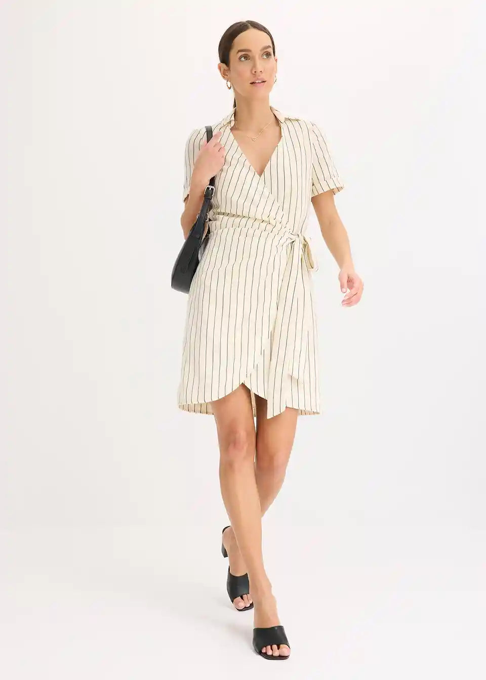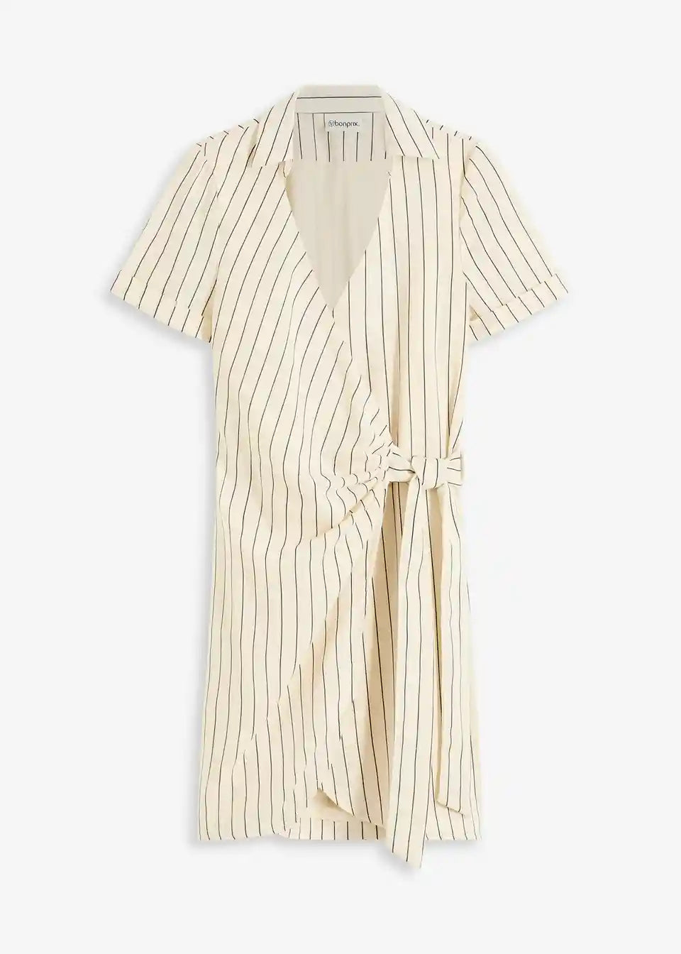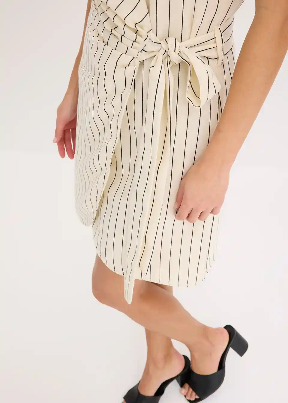 modna obleka na preklop z videzom lana in zavezovanjem ob strani