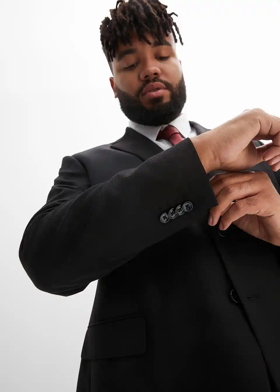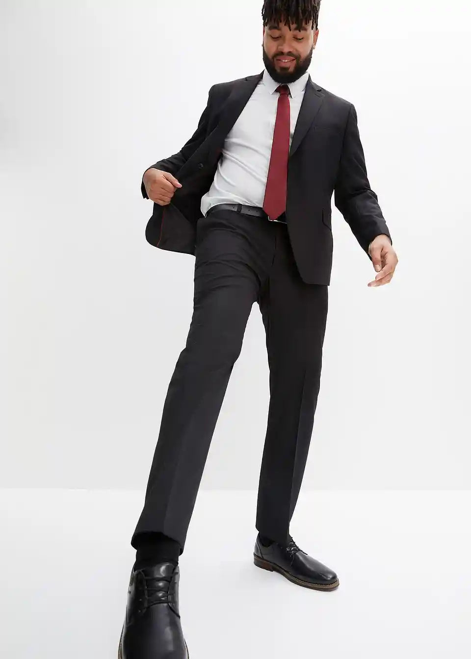 Moška obleka v klasičnem kroju: suknjič, hlače in kravata