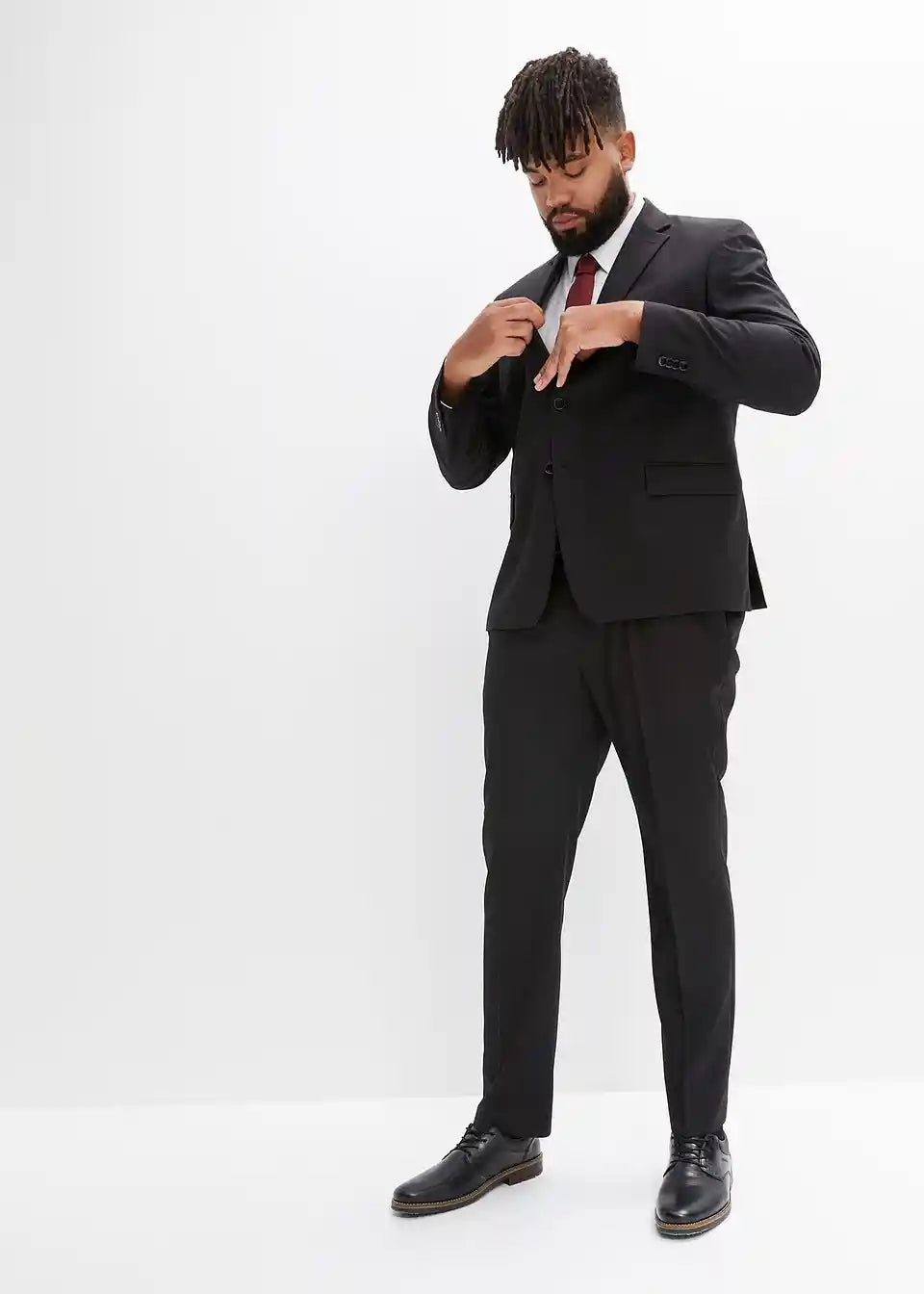 Moderna 3-delna obleka, ki vključuje suknjič, hlače in kravato