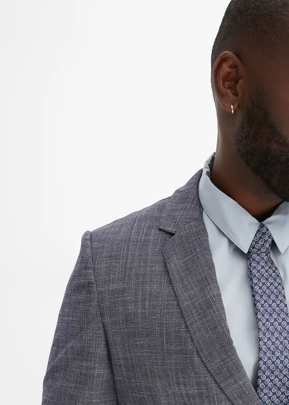 Moška obleka v klasičnem kroju: suknjič, hlače in kravata