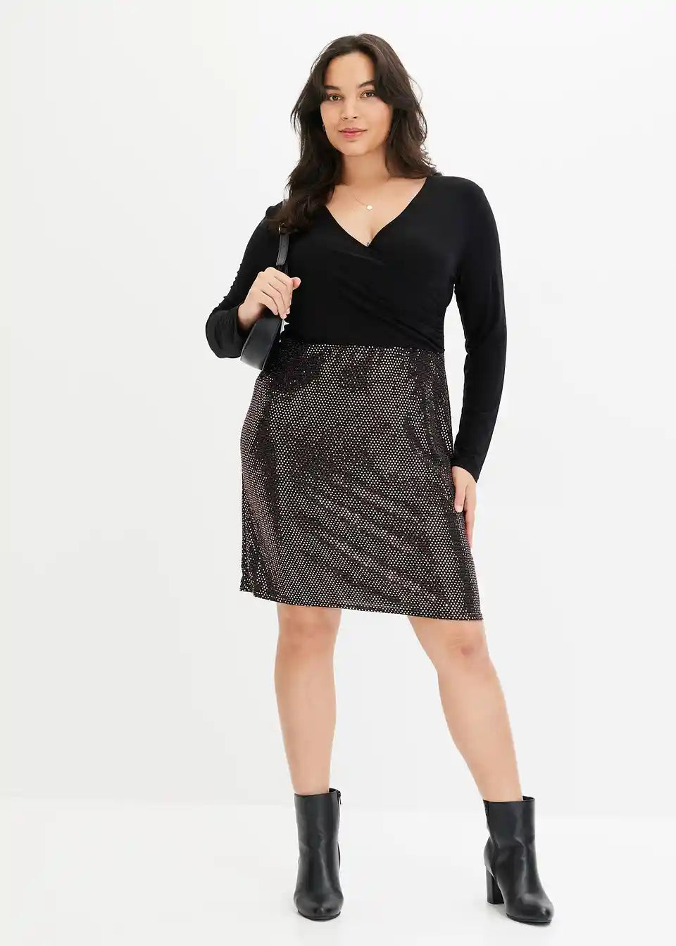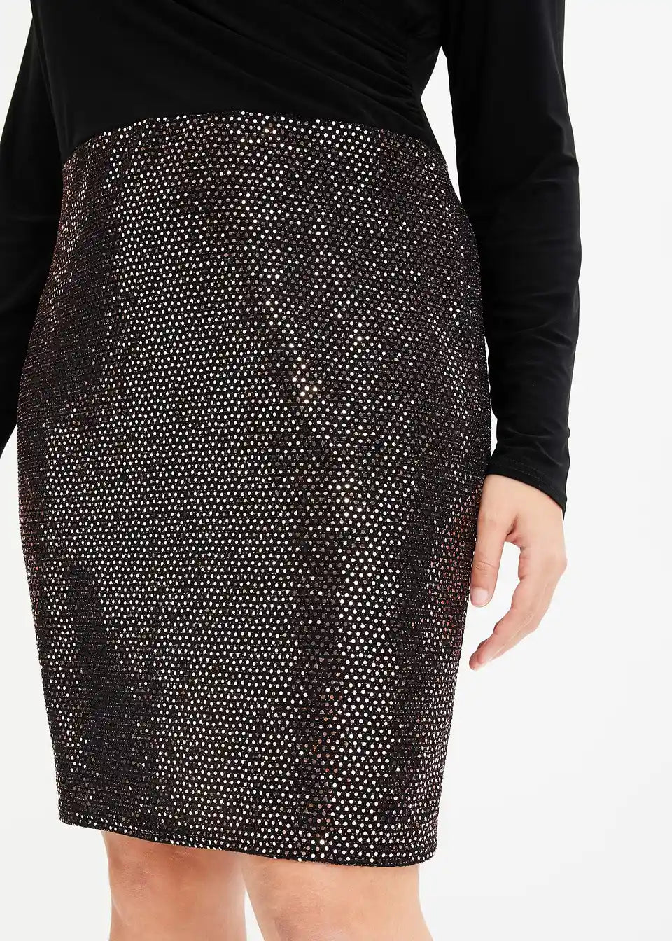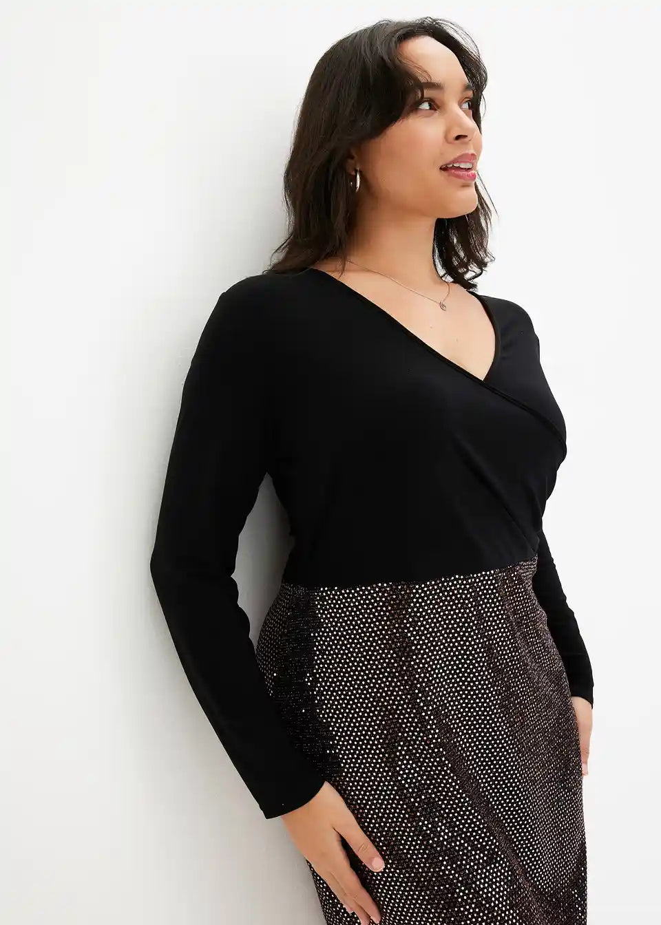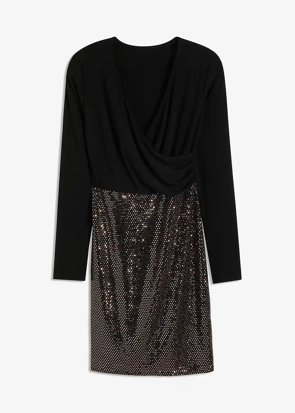 modna obleka s Pailletten na krilu in globokim V-izrezom spredaj