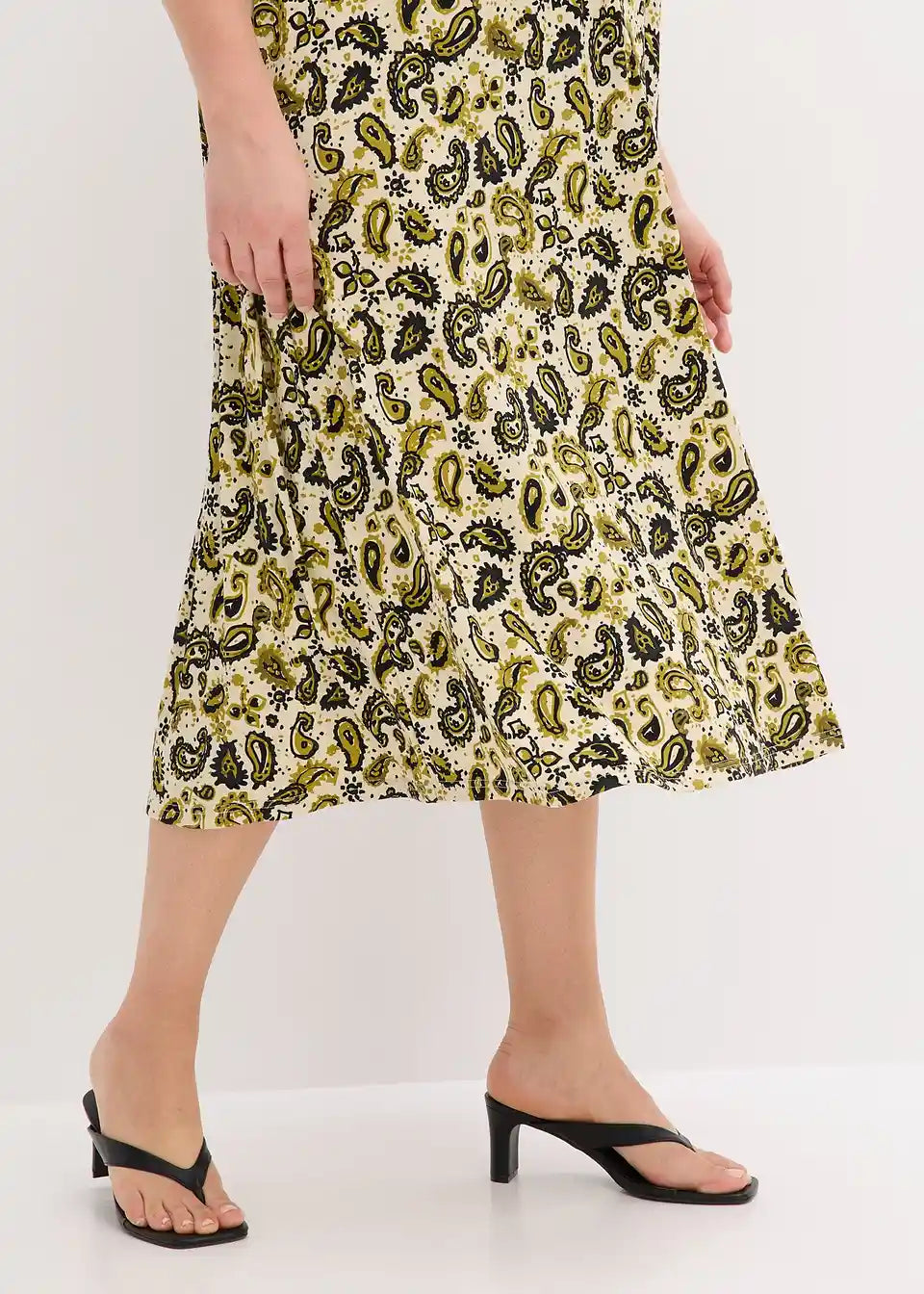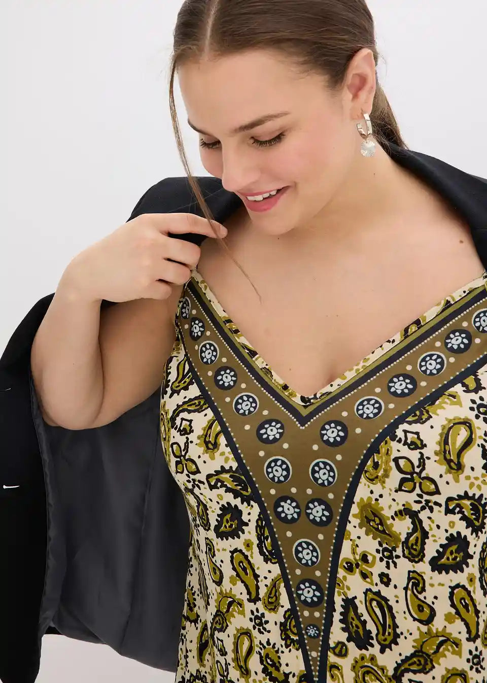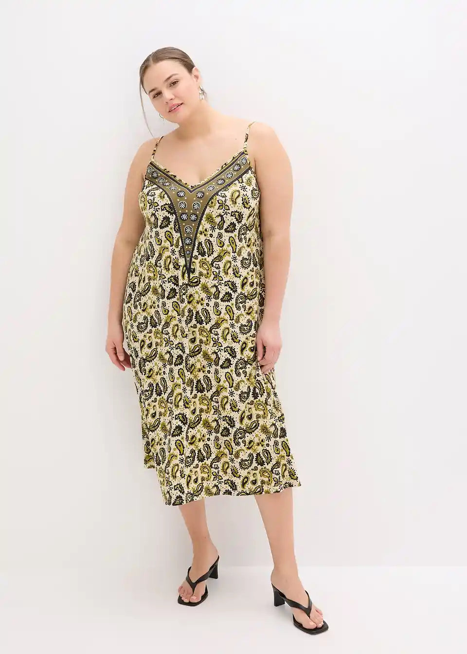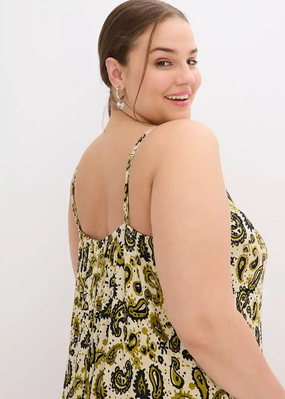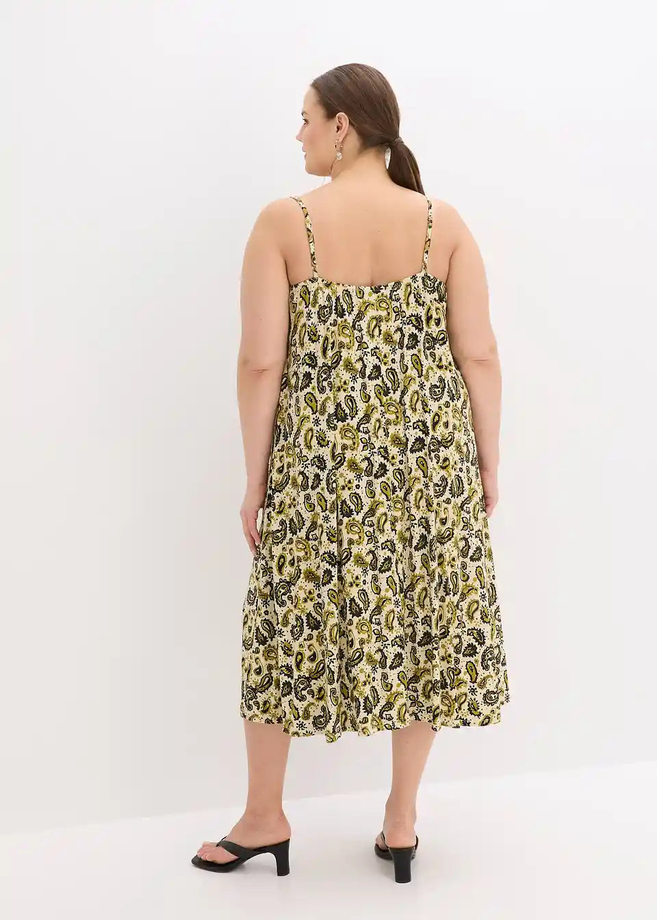 poletna obleka s tankimi naramnicami iz mehkega viskoznega materiala s spaghetti naramnicami in globokim V-izrezom spredaj