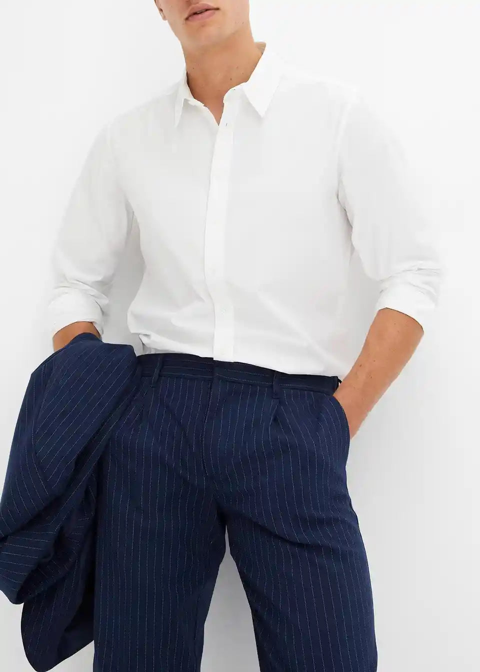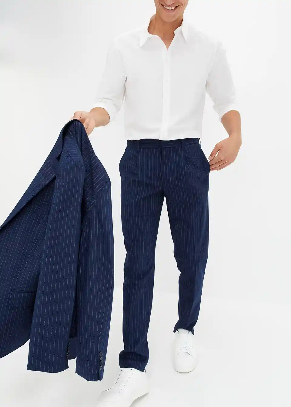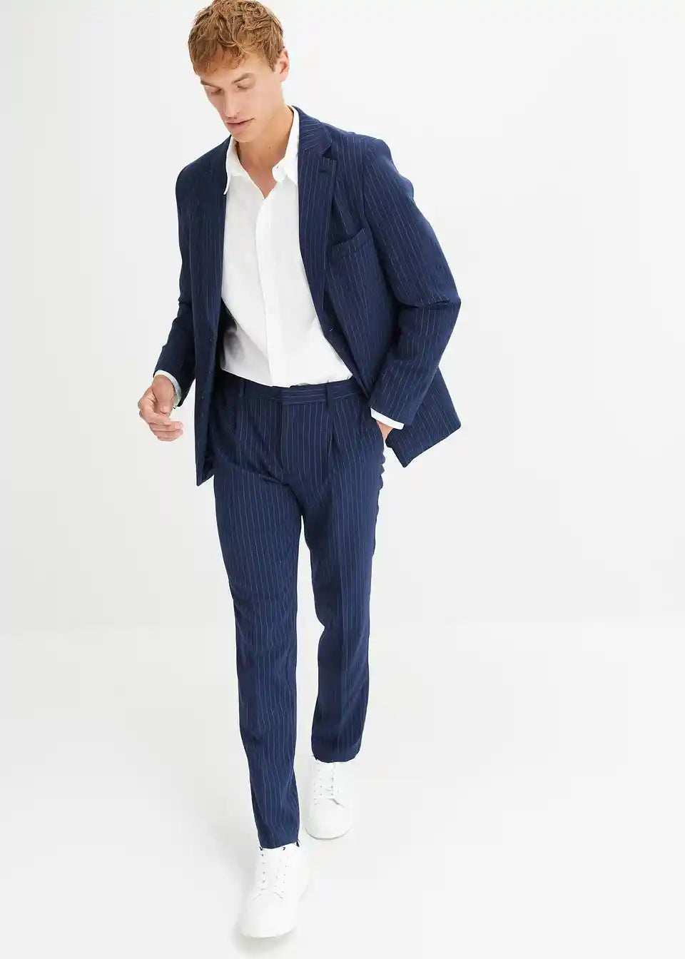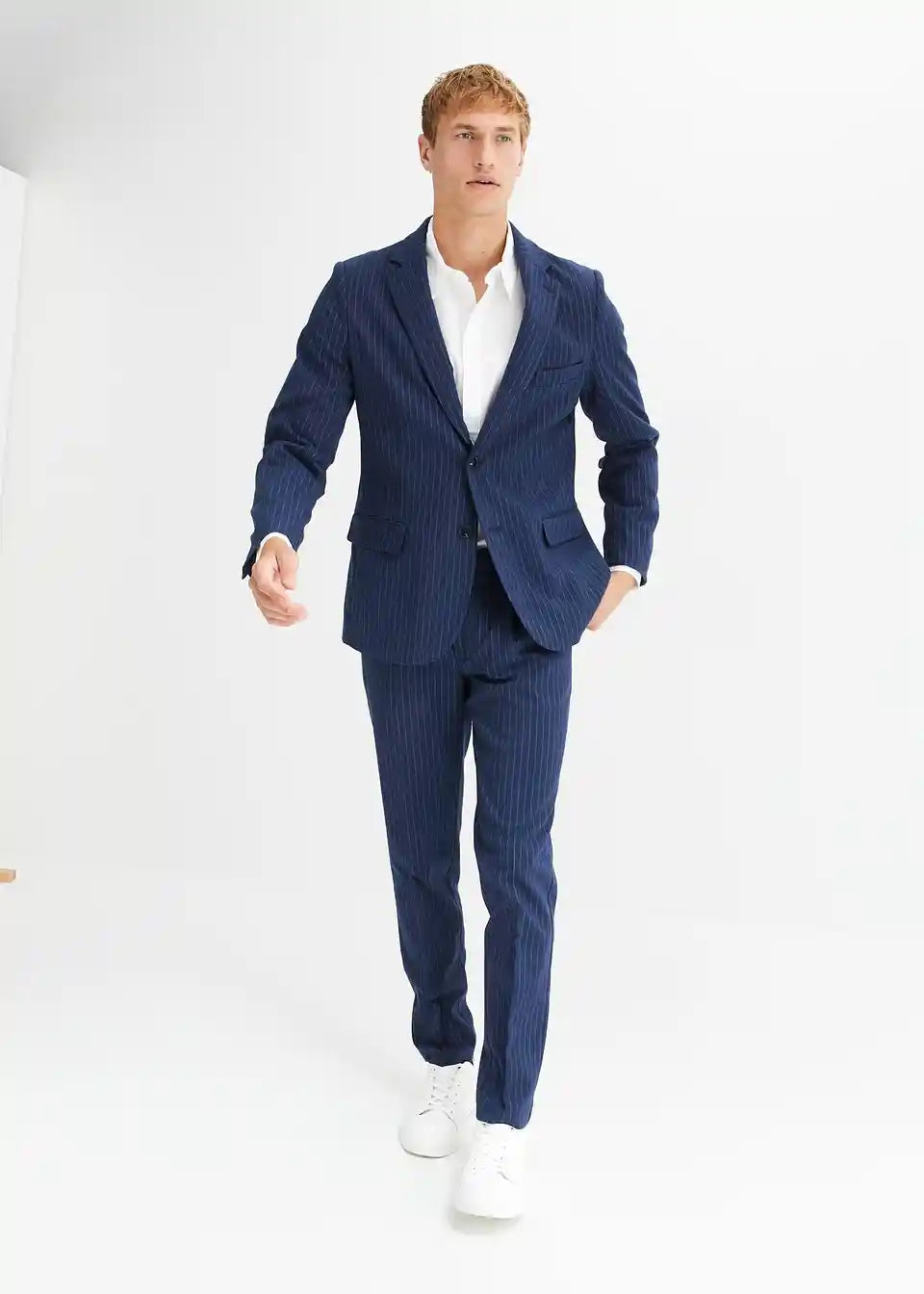 Moderna obleka v Slim Fit kroju z dizajnom drobnih črt, sestavljena iz suknjiča in hlač