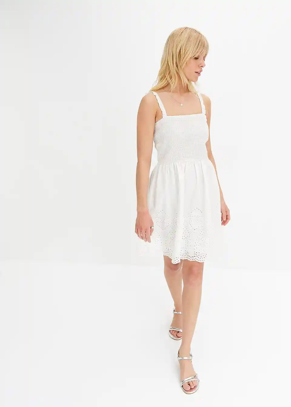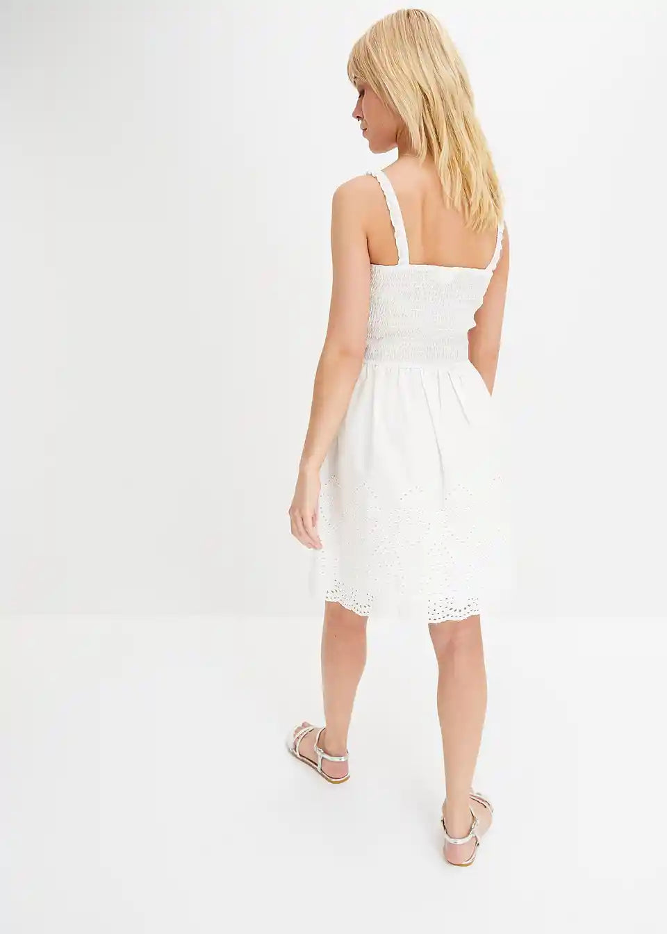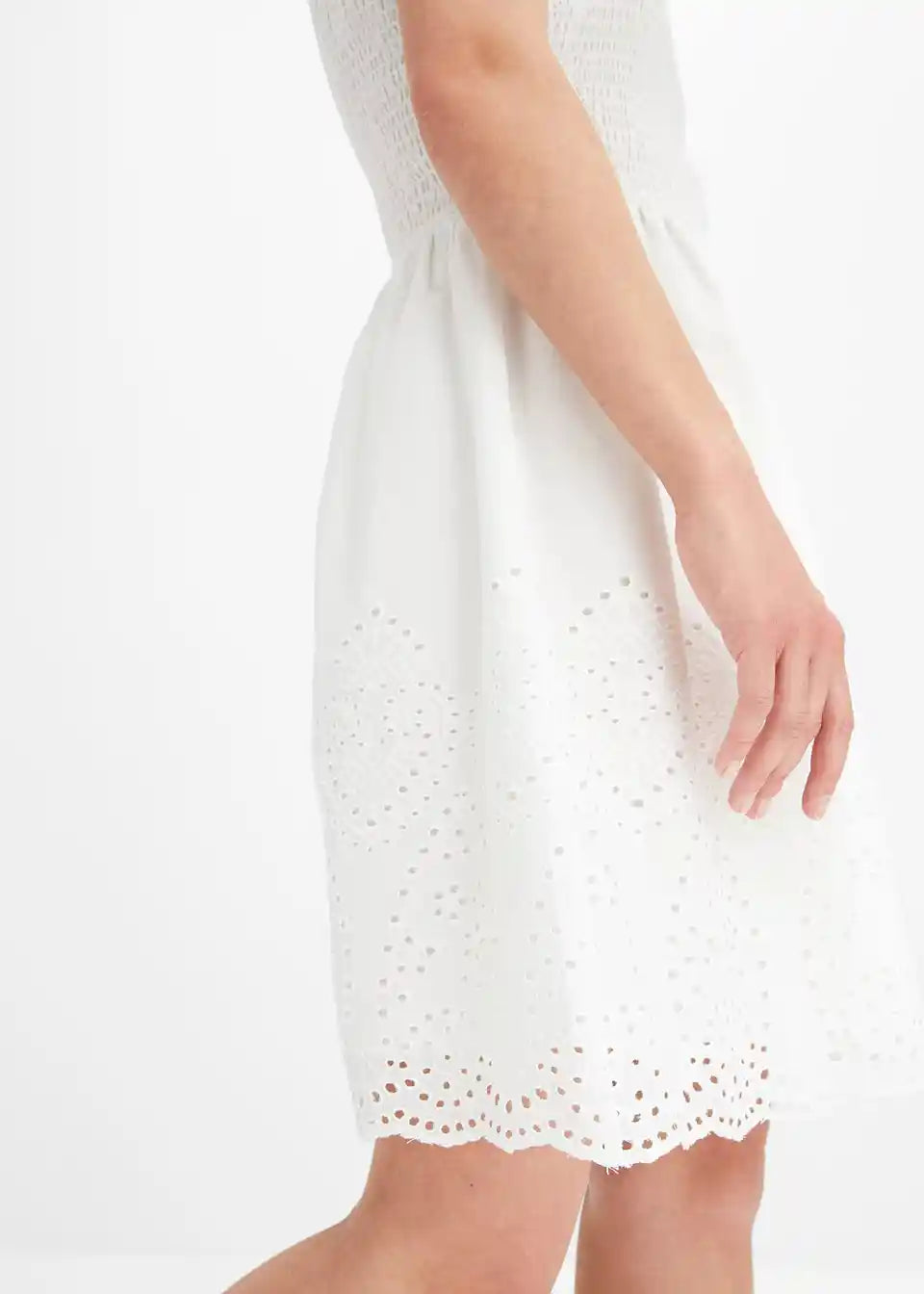 Obleka z udobnim všitkom smock in čudovitim luknjičastim vezenjem