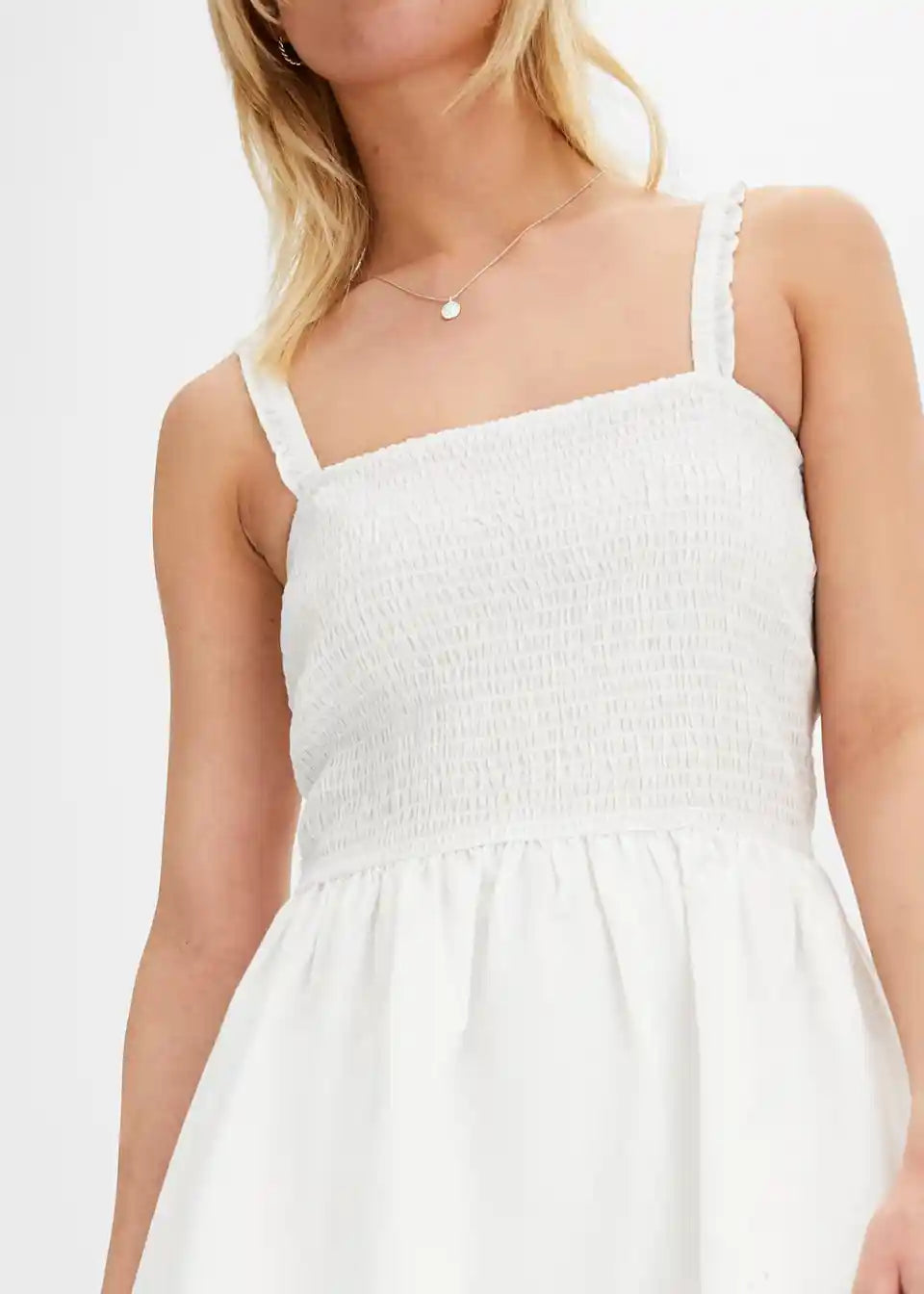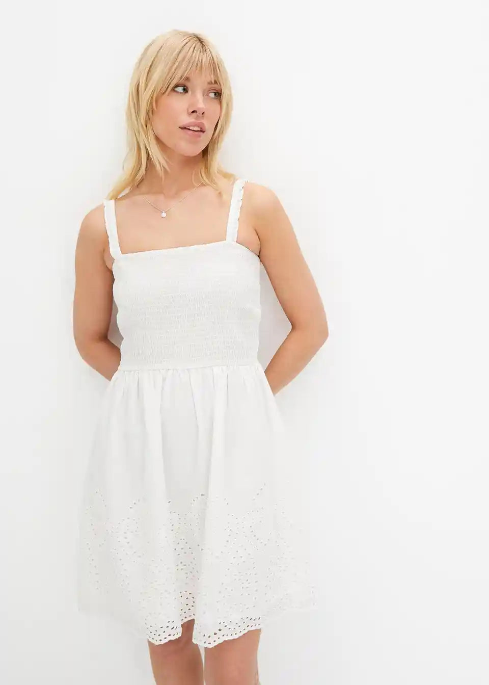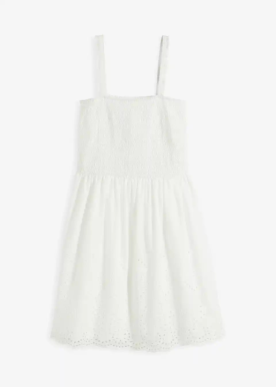 Obleka z udobnim všitkom smock in čudovitim luknjičastim vezenjem
