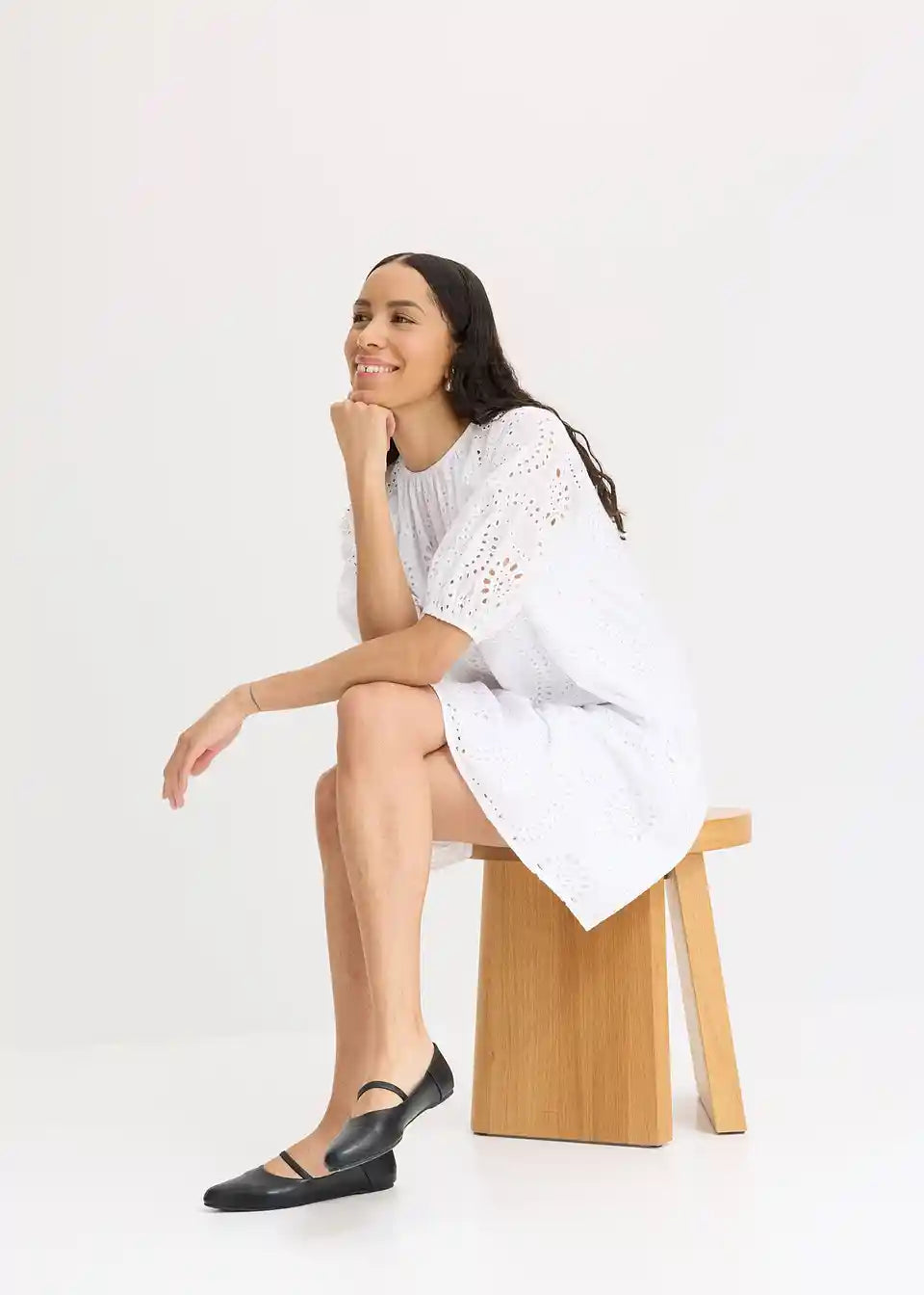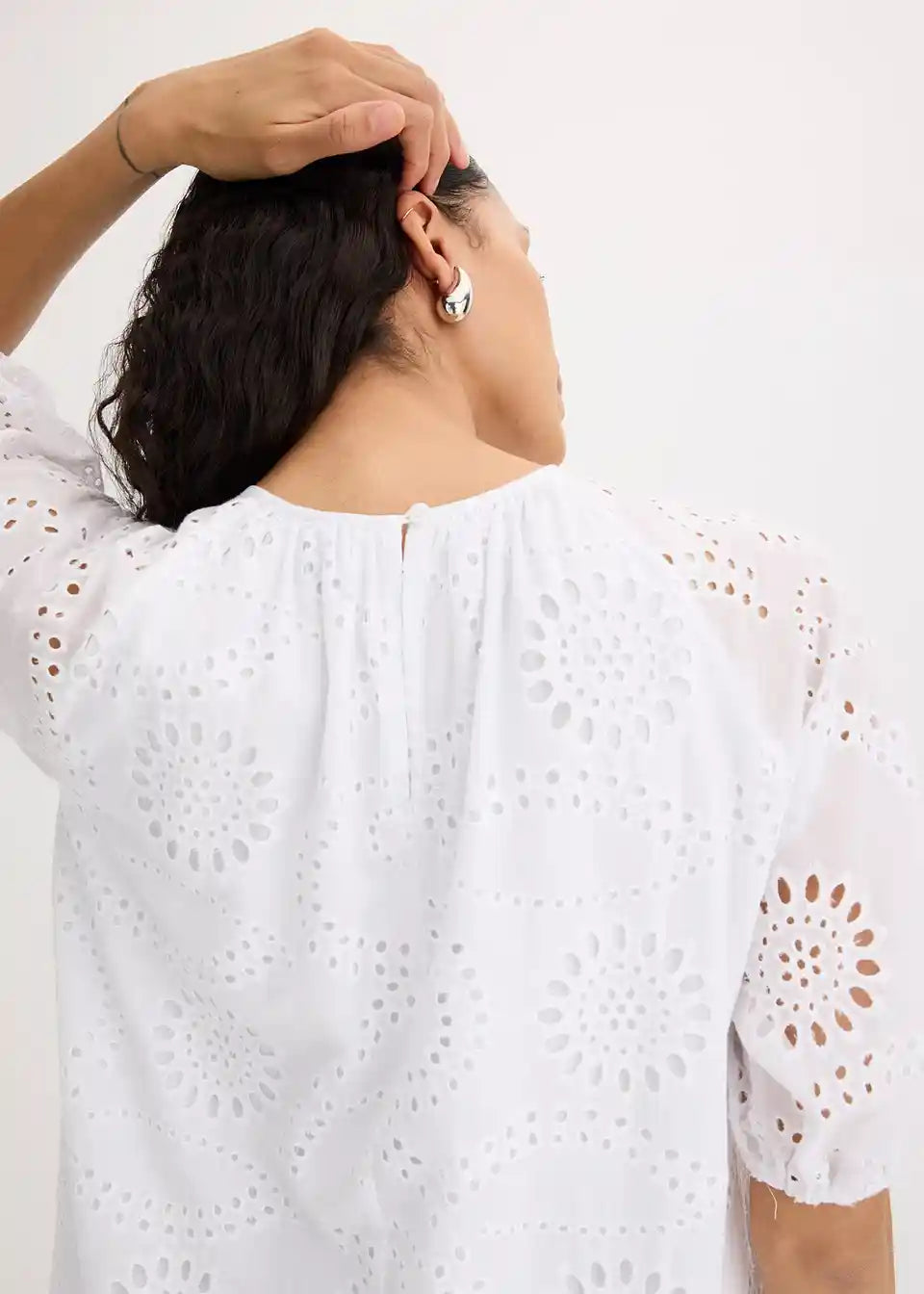 Obleka z luknjičasto vezenino