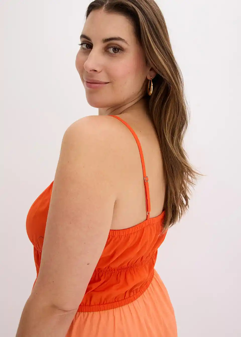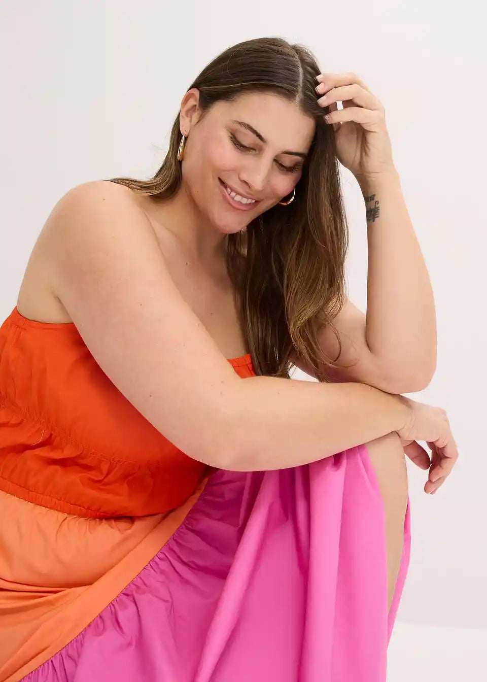 Modna maxi obleka iz čistega bombaža v Color-Blocking dizajnu z nastavljivimi spaghetti naramnicami in elastičnimi detajli v pasu