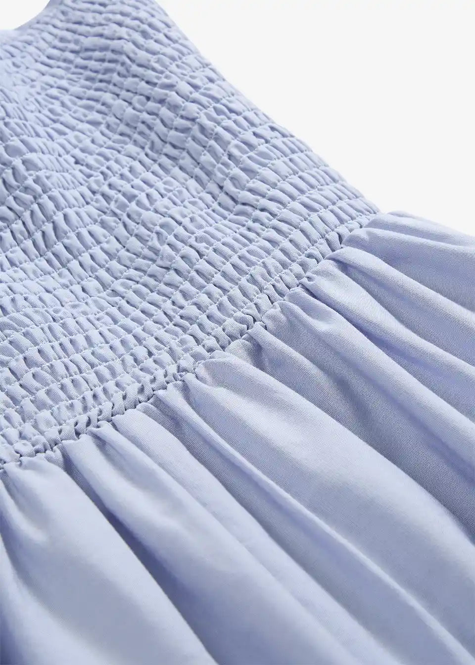 Obleka z naramnicami iz čiste ekološke bombažne tkanine z volančki in naborki