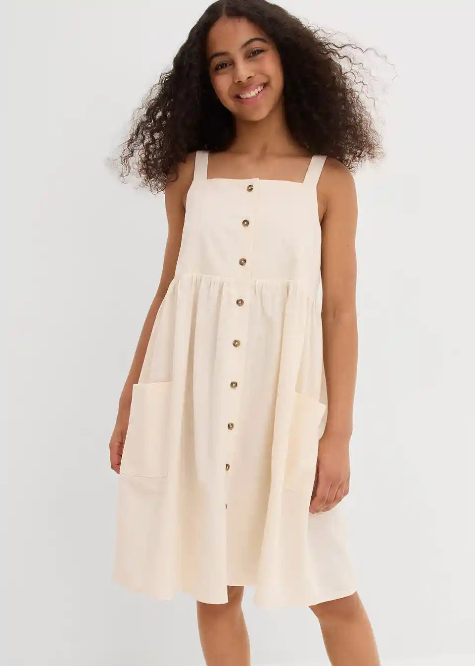 Poletna obleka z naramnicami za dekleta iz hladilne mešanice lana
