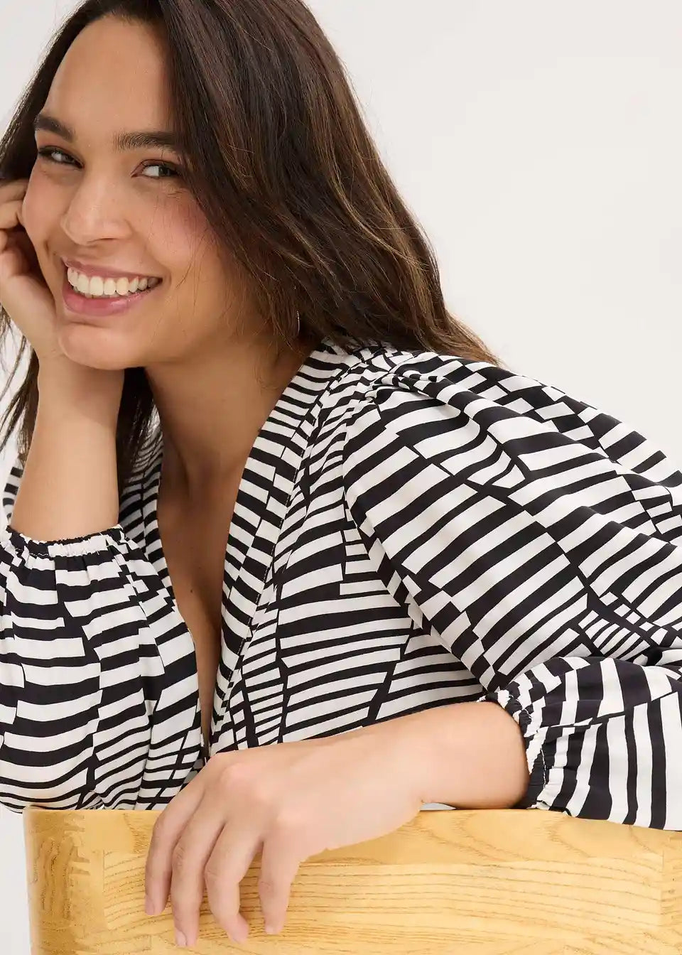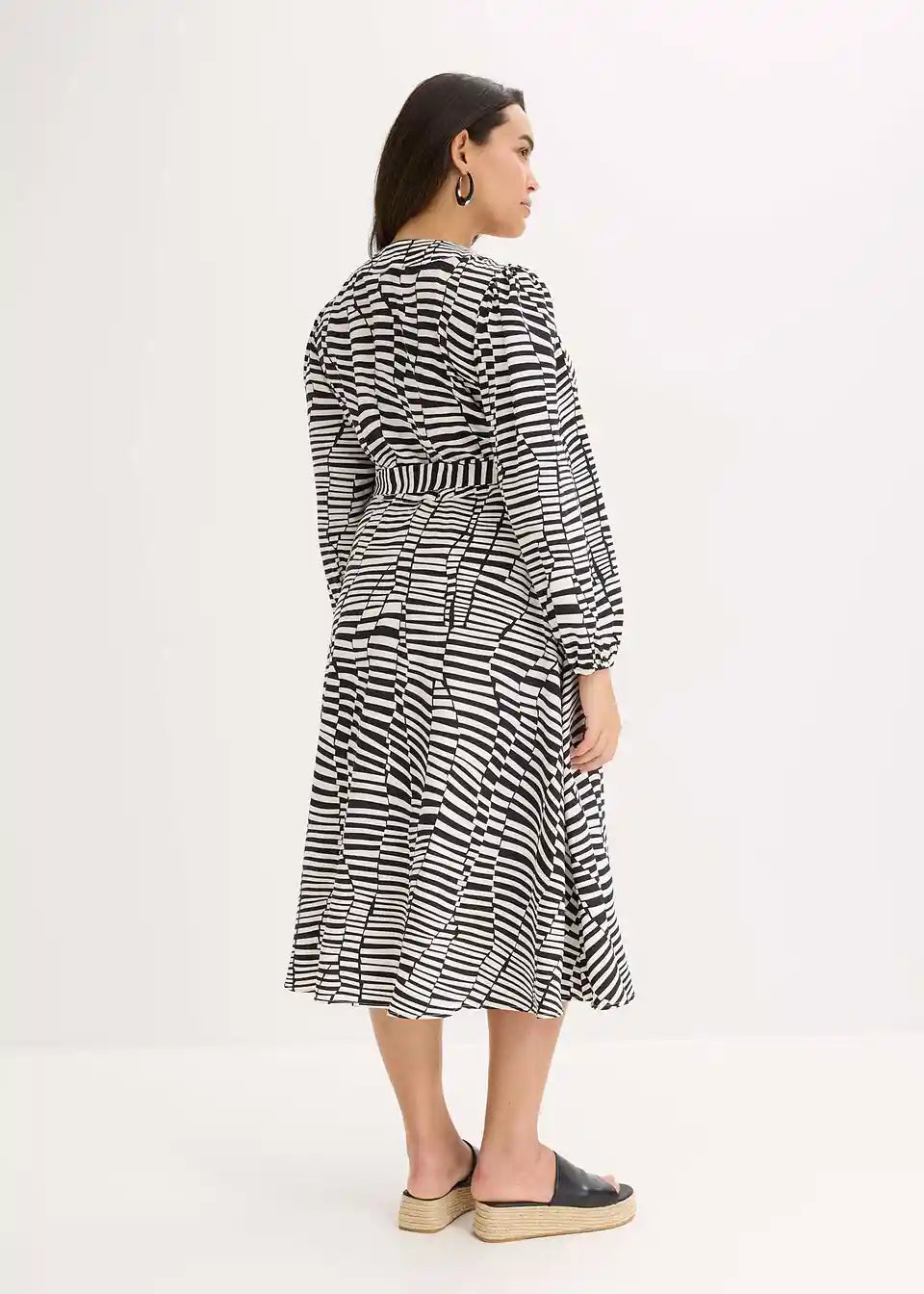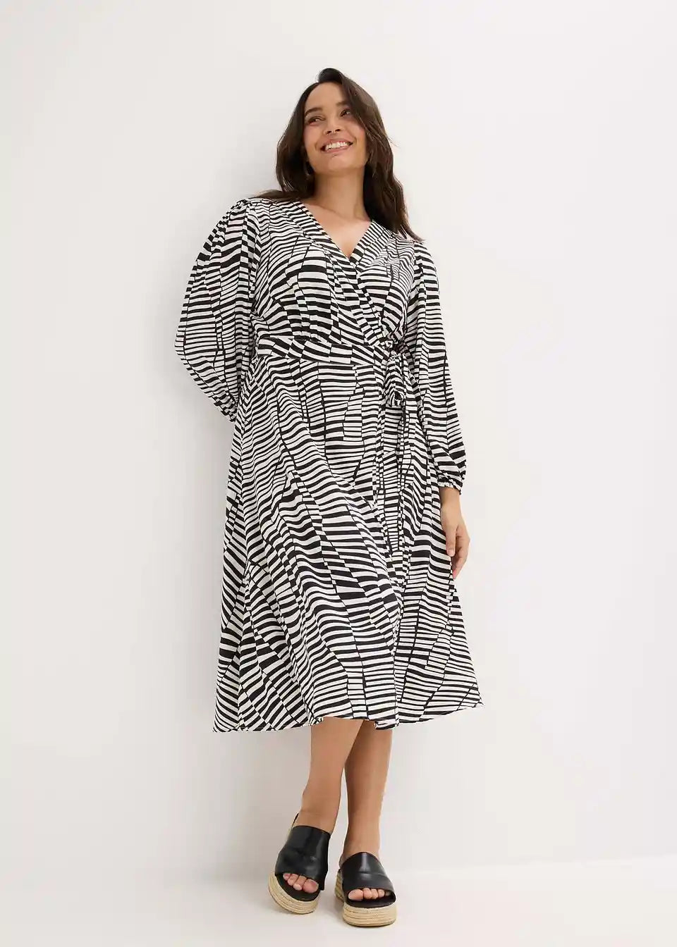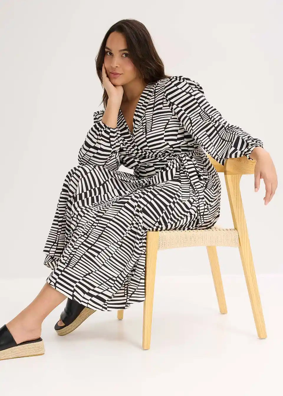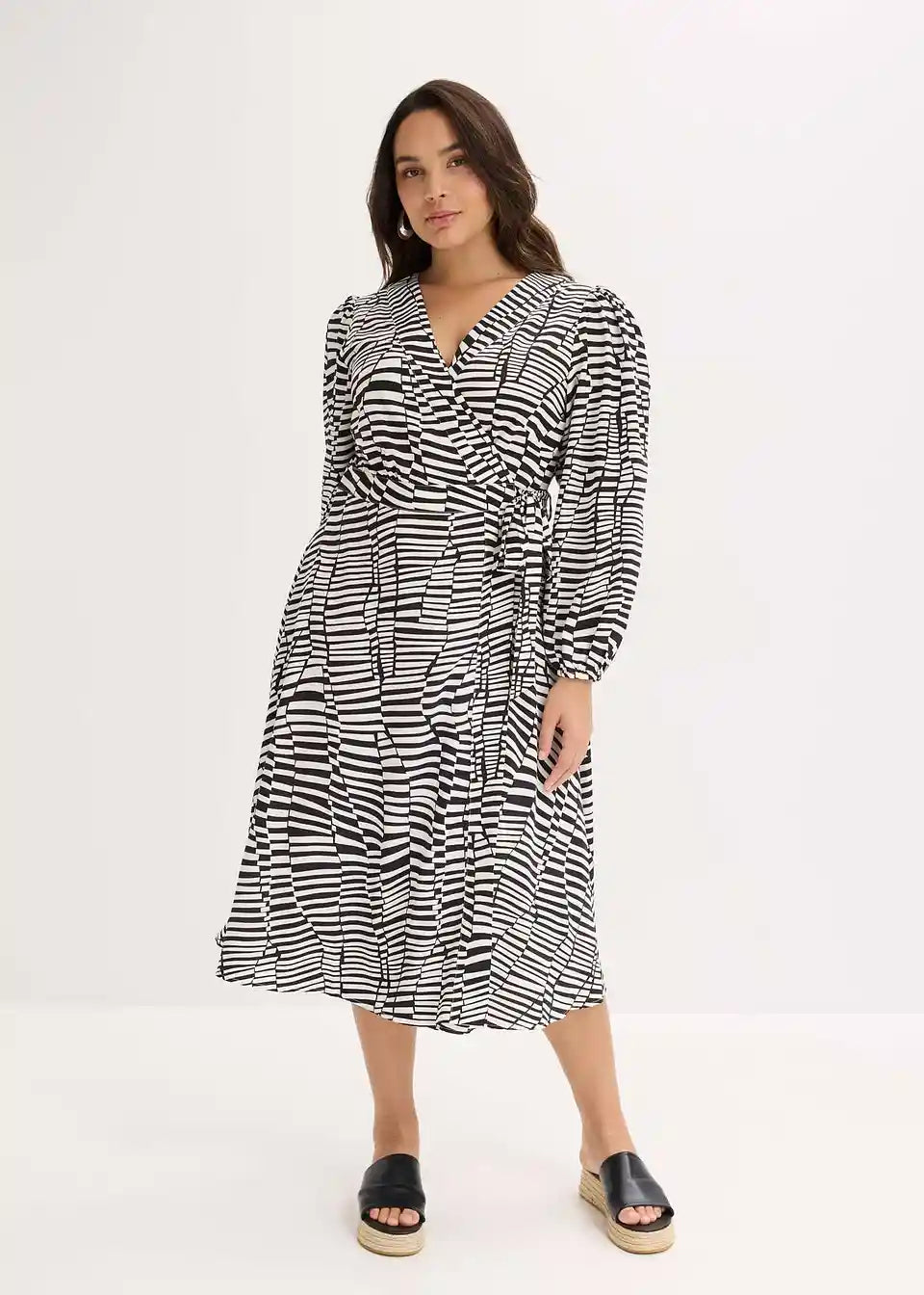 moderno potiskana ovitna obleka v midi dolžini z V-izrezom