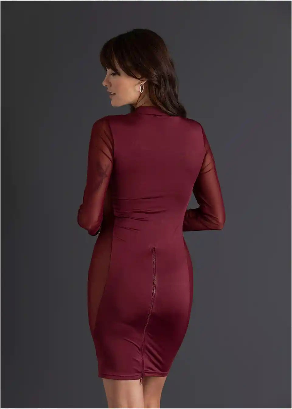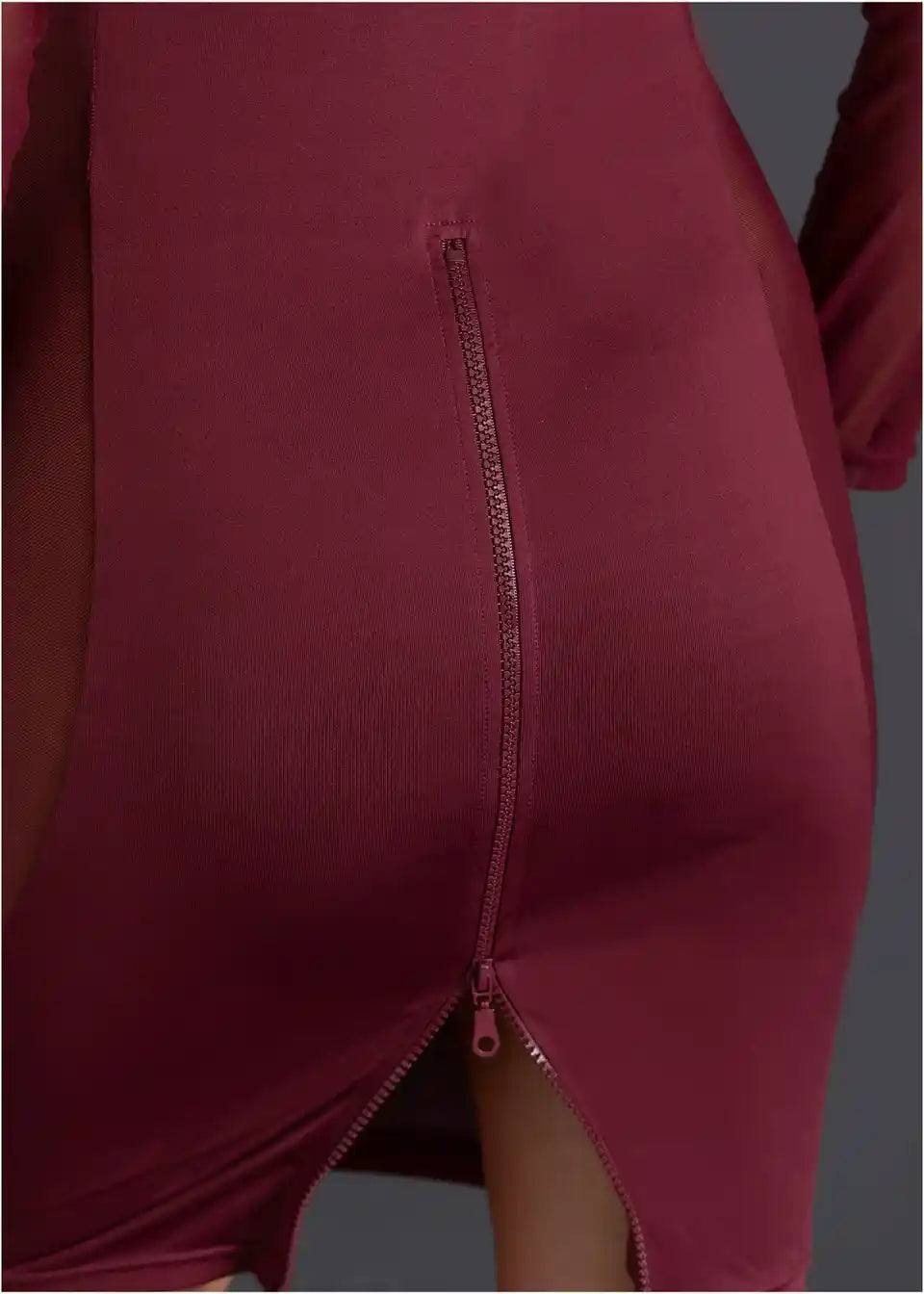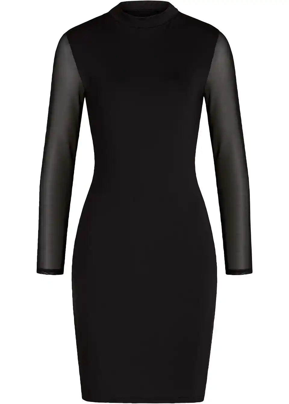 Obleka z zadrgo zadaj in prosojnimi mrežastimi všitki.