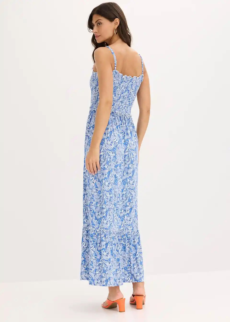 Obleka z naramnicami z gostim naborkom