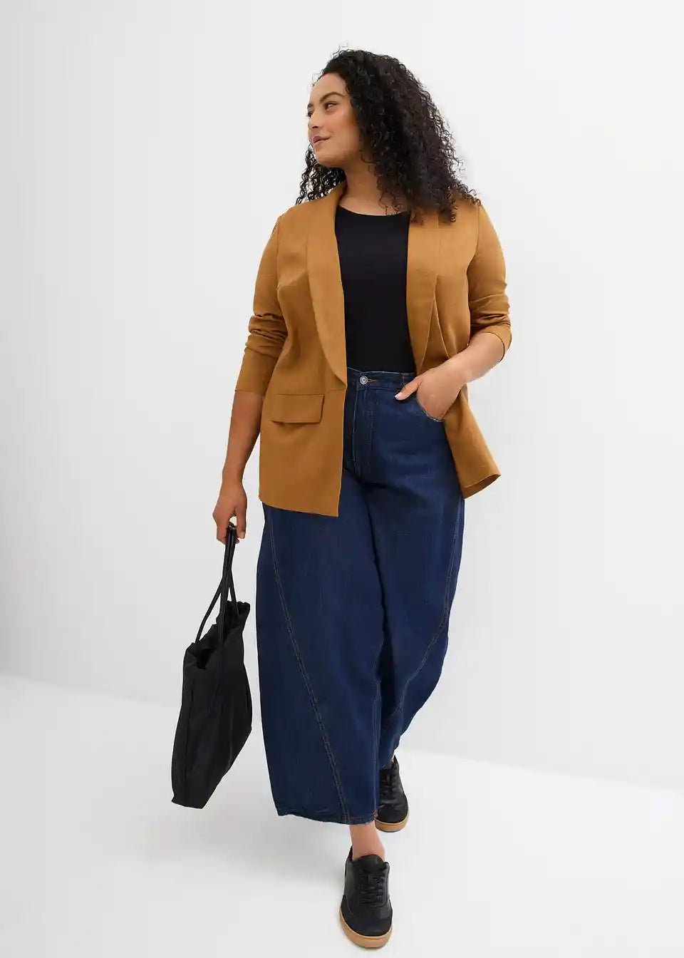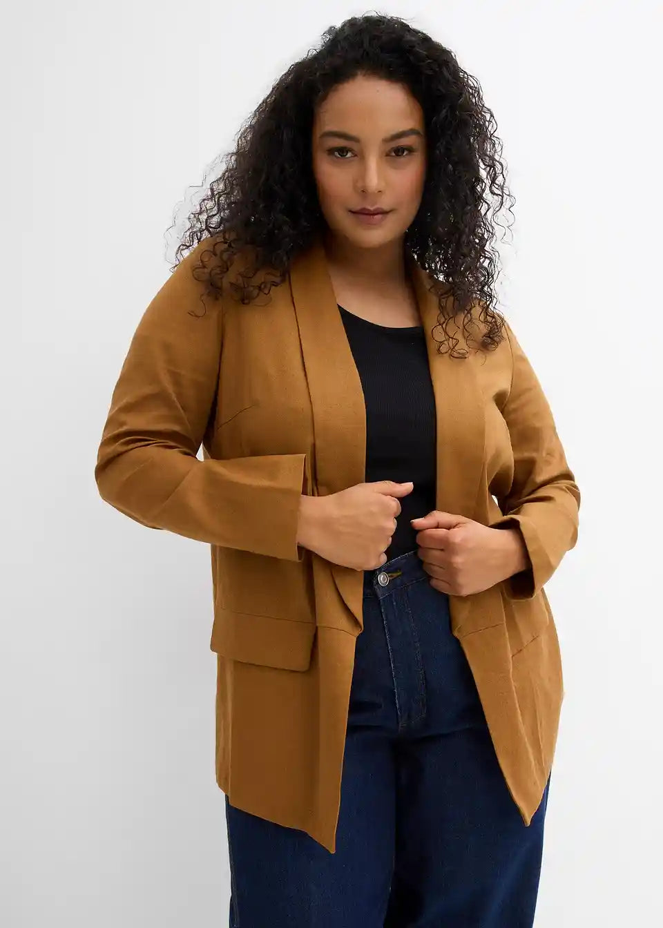 Široko krojen blazer iz laneno viskozne mešanice