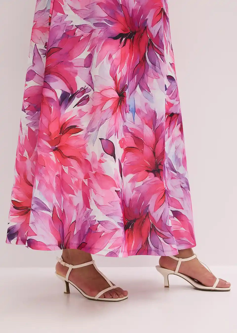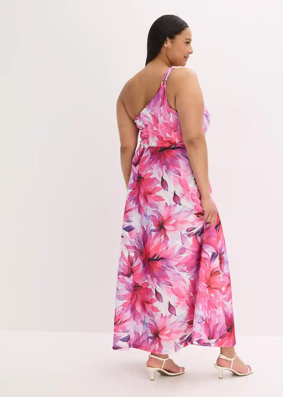 Moderna in ženstvena: One-Shoulder obleka v maksi dolžini iz strukturiranega krep blaga z vsestranskim potiskom naredi vsak kos edinstven