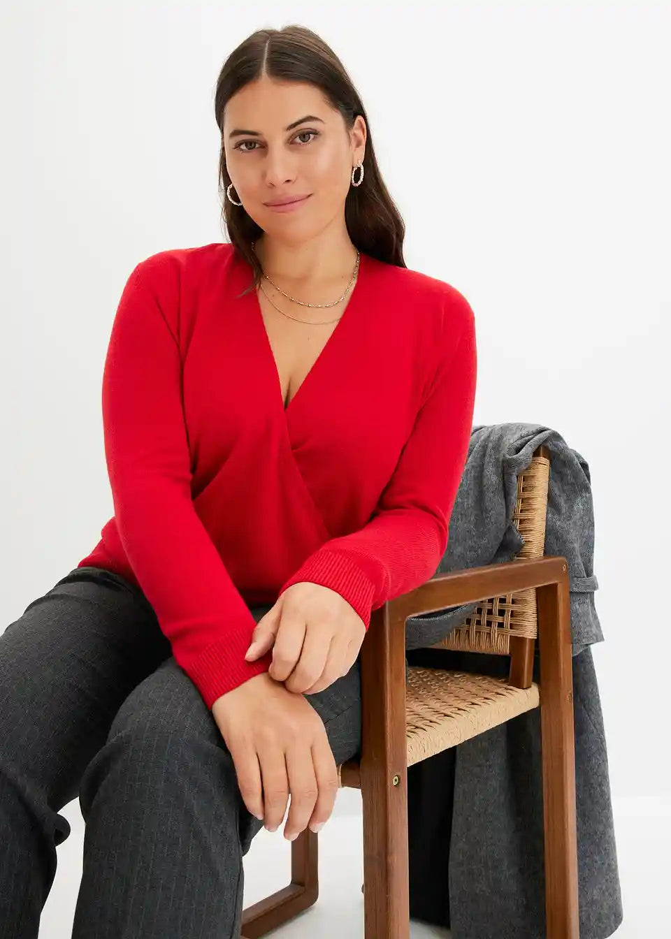 Učinek preklopa pri tem modelu znamke BODYFLIRT ustvari globok V-izrez. Ta omogoča kombiniranje s topi. Čipka, kontrastna barva ali vzorec - vsak kos puloverja s preklopom dobi nov videz. Za dovršen zaključek poskrbi rebrast, nekoliko širši spodnji rob. Rebrast dizajn se ponovi tudi na koncih rokavov. Ne glede na to, ali ga nosite sproščeno s kavbojkami in škornji čez preprosto majico ali bolj prefinjeno v kombinaciji s čipko in usnjenimi pajkicami, pulover s preklopom navduši v mnogih različicah.
