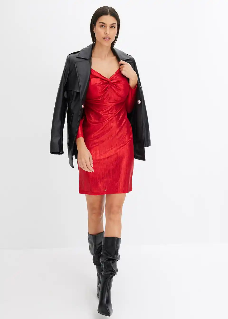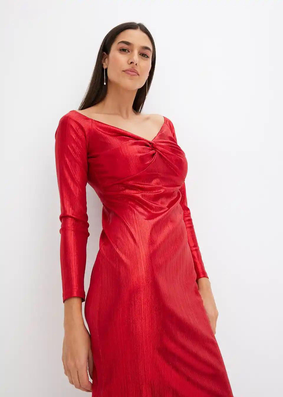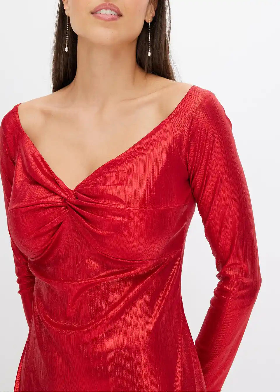 Elegantna obleka z odlično prileganjem in vozel učinkov v sijočem videzu