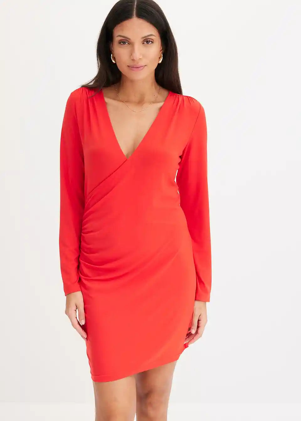 Moderna, drapirana mini obleka z globokim V-izrezom