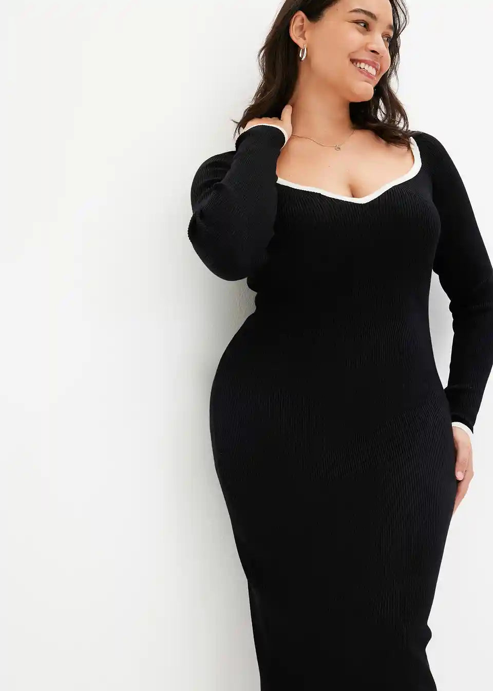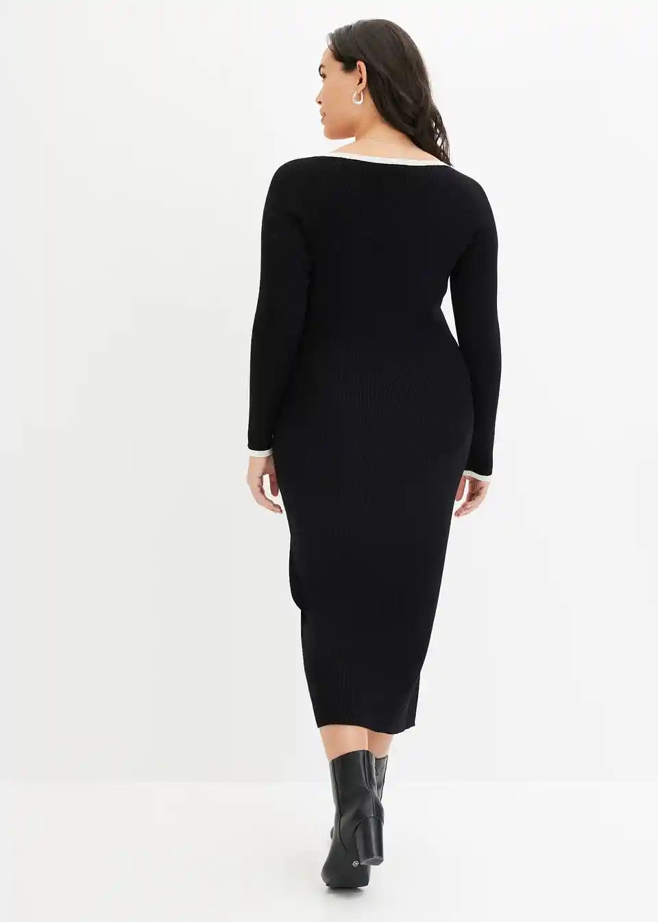 Pletena obleka s kontrastnim zaključkom ob izrezu