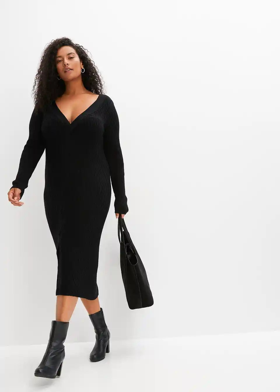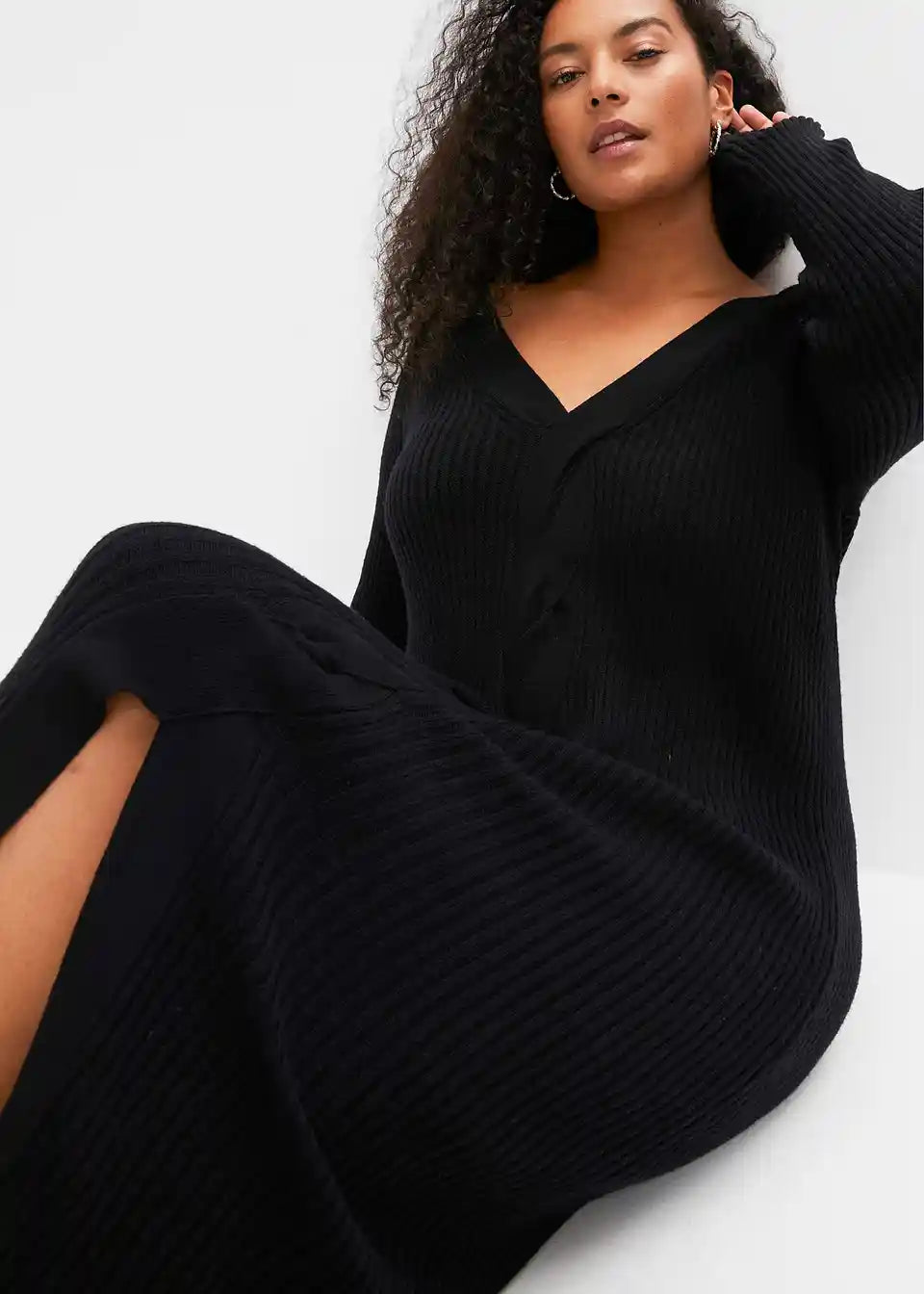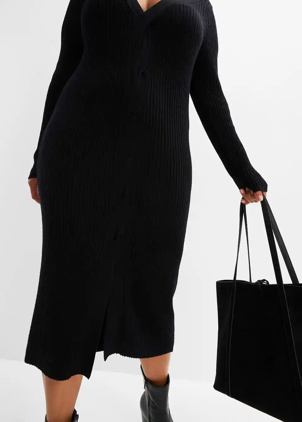 Ženska oprijeta pletena obleka z razporkom