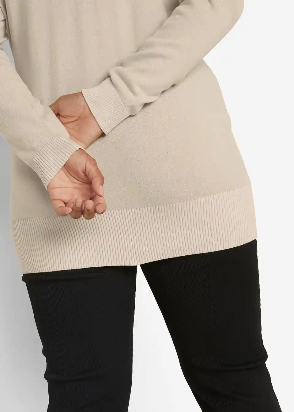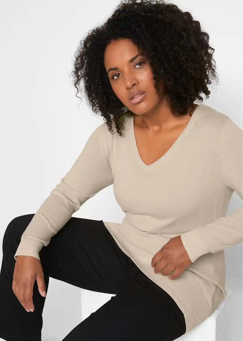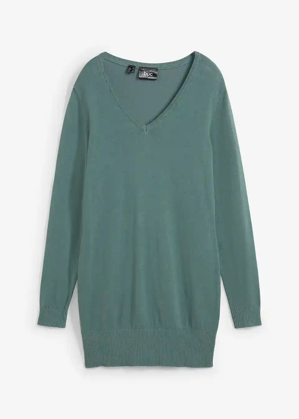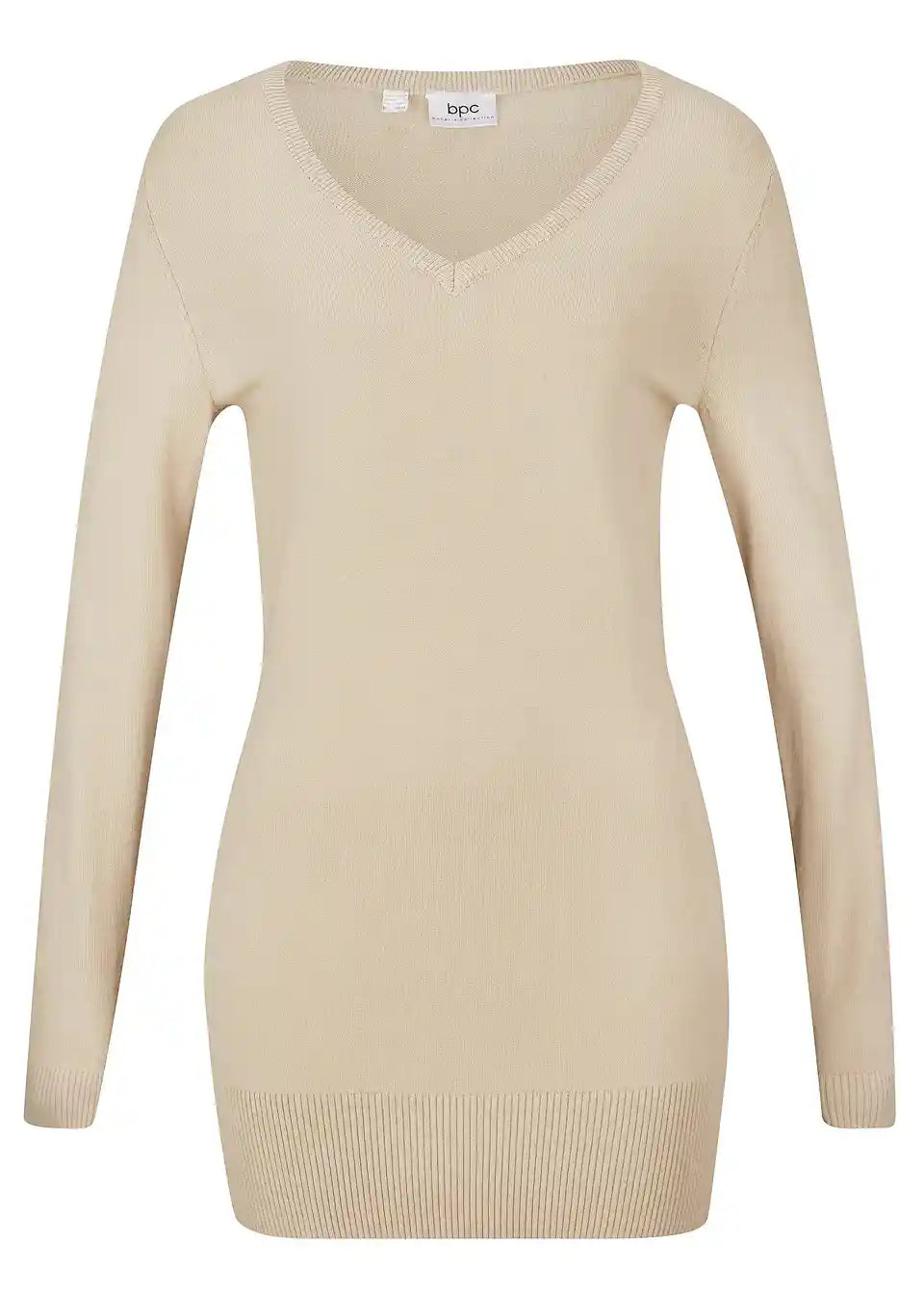 Dolg pulover iz kolekcije bpc, ki je na voljo v svežih barvah, je izdelan iz prijetnega finega pletenja. Modna dolga oblika se lepo poda k ozkim kavbojkam. S klasičnim V-izrezom in oprijetim krojem pulover poudari postavo. Ta strojno pralni dolg pulover je vsestranski osnovni kos za pisarno in prosti čas. Telovniki, jopiči ali dolge verižice mu dodajo privlačen pridih.