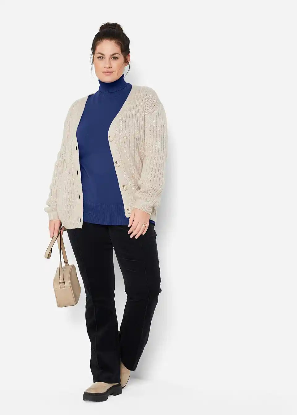 Zaradi visokega puli ovratnika ta pulover znamke bpc deluje sproščeno. Lahka kakovost finega pletiva zagotavlja, da je pulover še posebej prijeten na otip in oblikovno obstojen. Široki patentni robovi na robu in na rokavih poudarjajo ležerni videz. Ta enostaven osnovni kos izgleda dobro tako s preprostimi hlačami kot tudi z udobnimi krili. Različne kombinacijske možnosti naredijo puli pulover zares priljubljen kos.