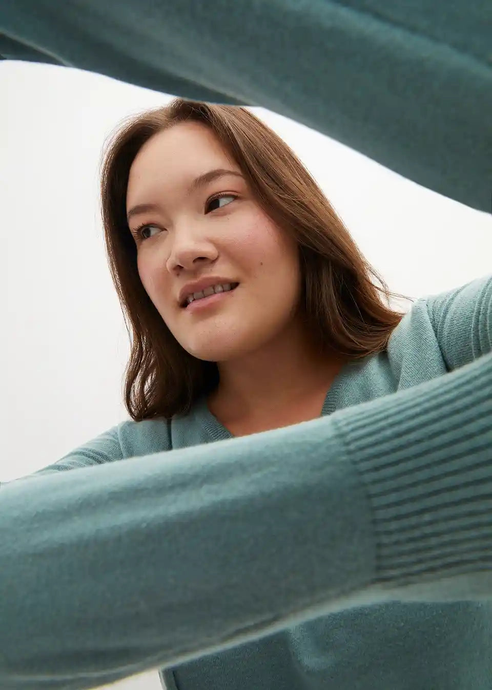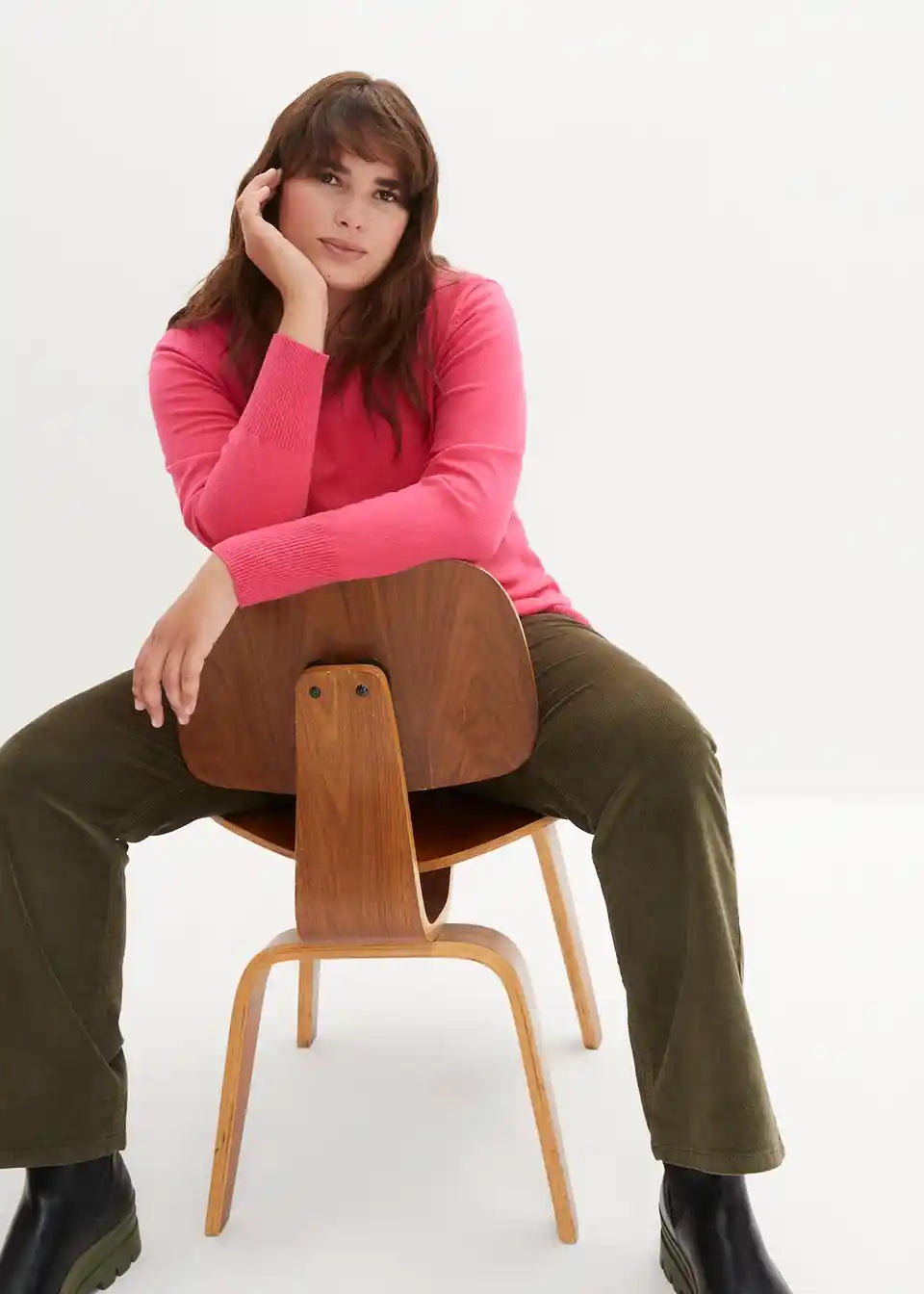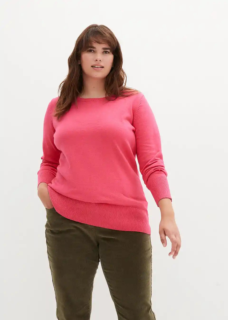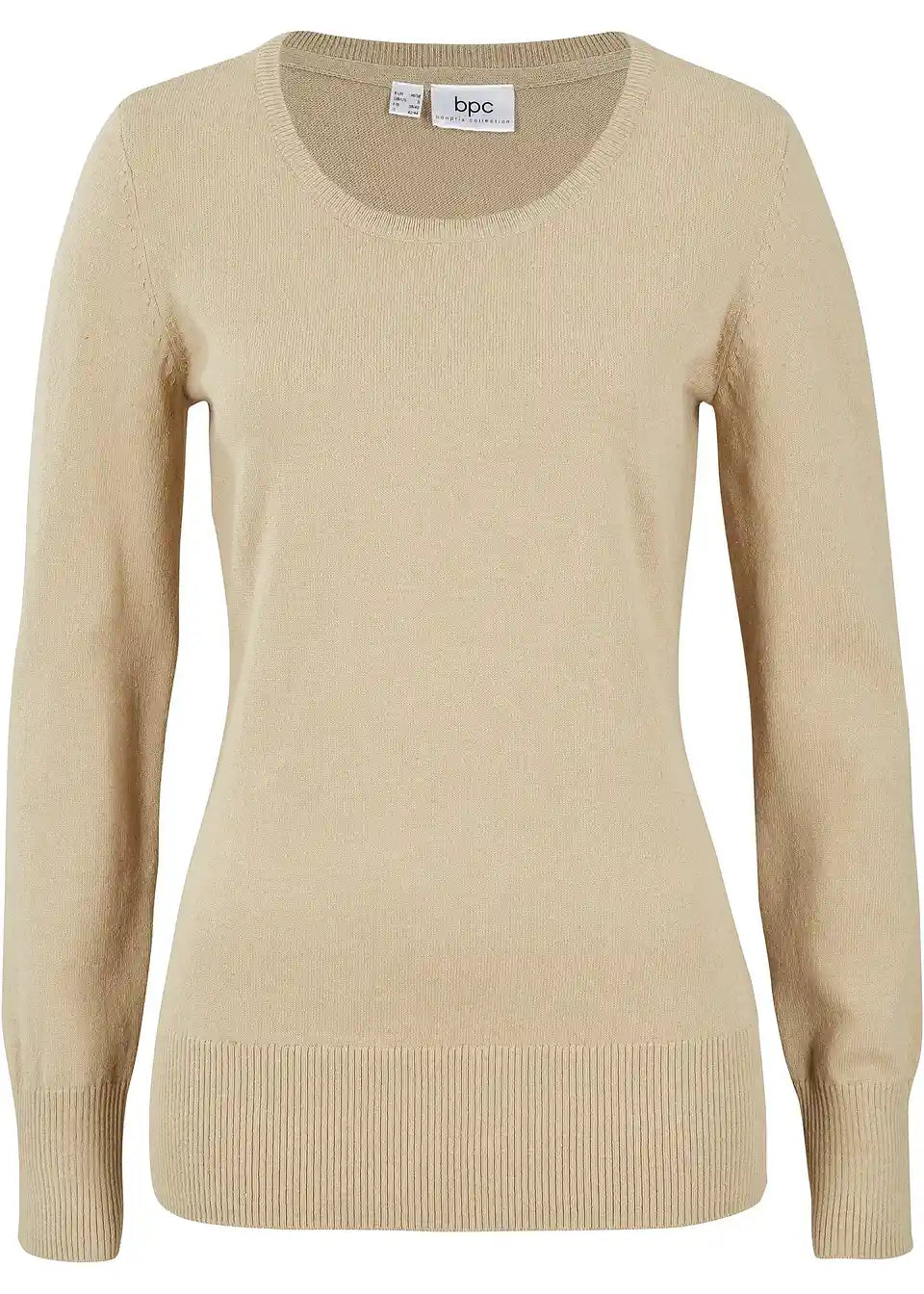 Pulover b.p.c Casual iz finega pletiva, z V-izrezom in rebričastimi robovi. Dolžina približno 64 cm (velikost 36/38) do približno 72 cm (velikost 52/54), pralno v stroju