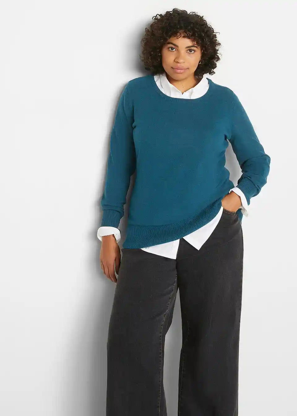Večkrat kombinirljiv osnovni pulover z recikliranim bombažem