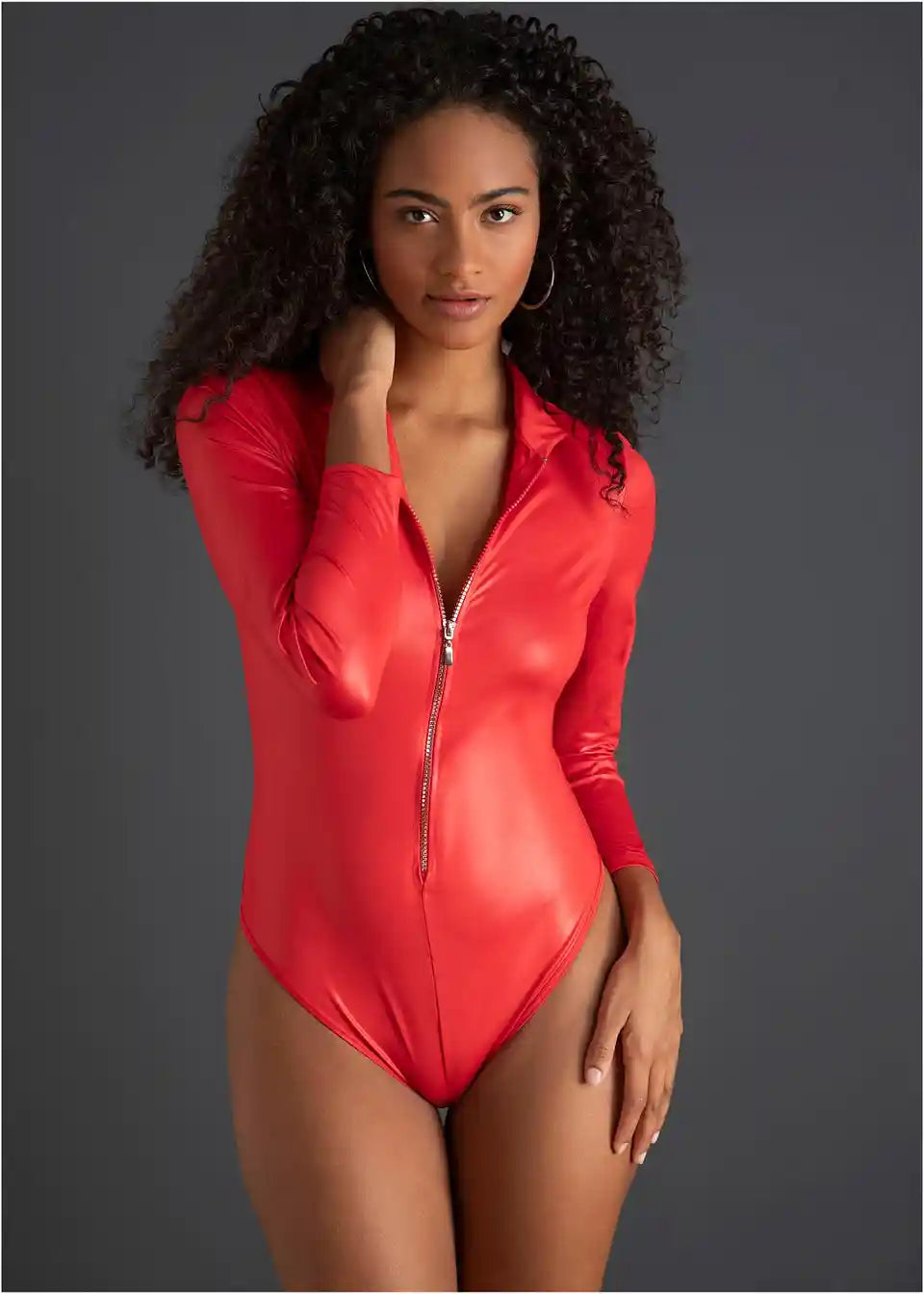 Seksi, seksi, seksi! Ta vroč dolg rokavni body z ouvert poudari vaše obline in ponuja optimalno udobje pri nošenju zahvaljujoč super elastičnemu materialu. Z zadrgo na dekolteju lahko sexy poudarite svoje prsi in razkrijete toliko svojih čarov, kot želite. Body je na voljo tudi v večjih velikostih.