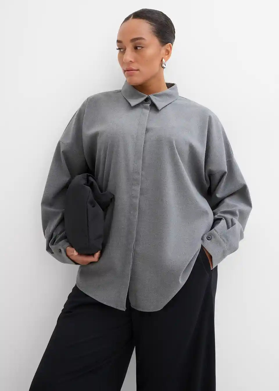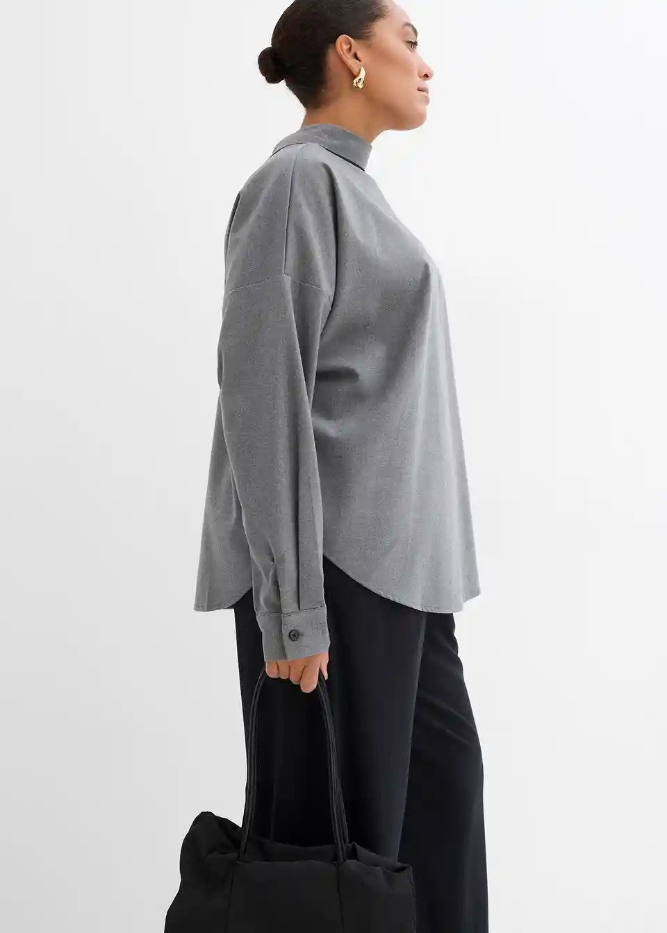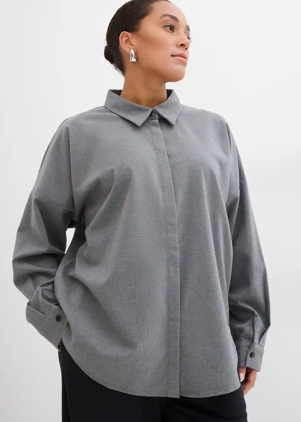 Obračljiva bluza z zavihanim ovratnikom, dolgimi rokavi in zapiranjem na gumbe zadaj