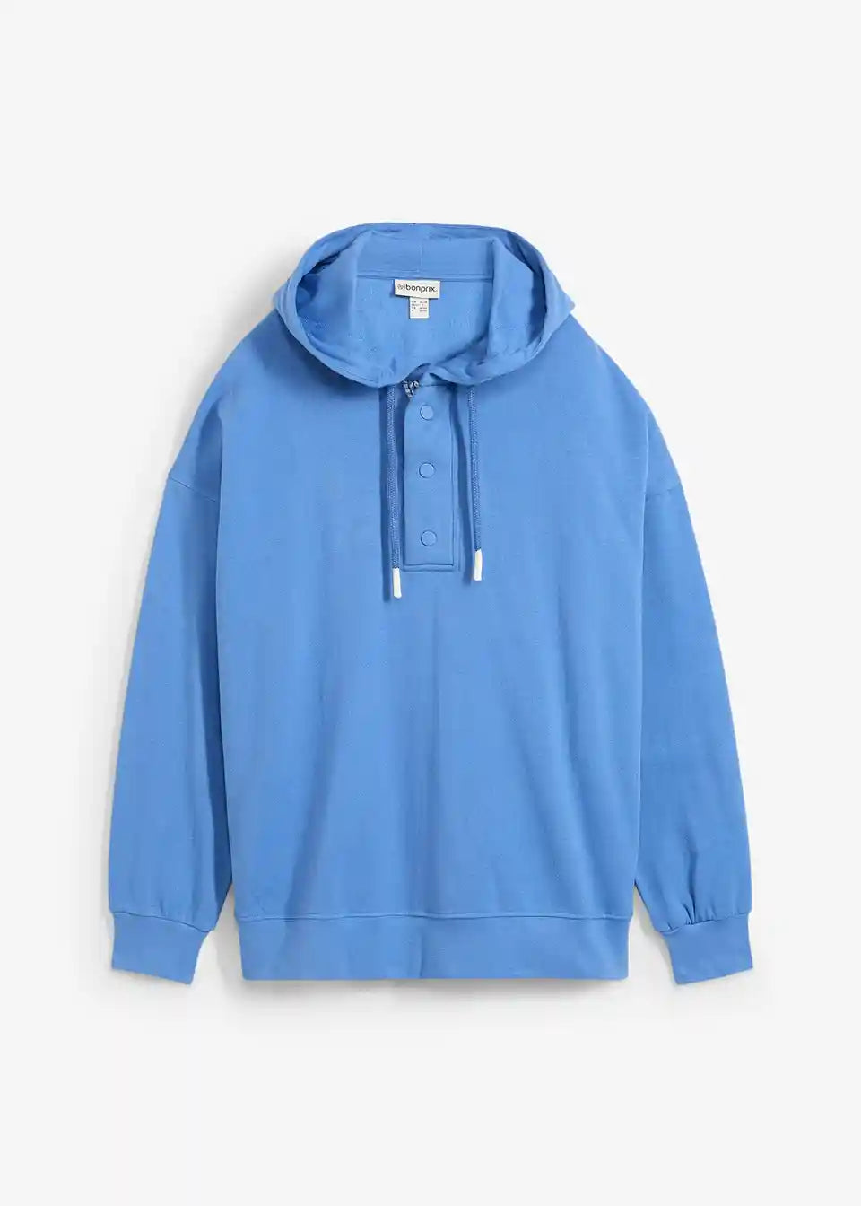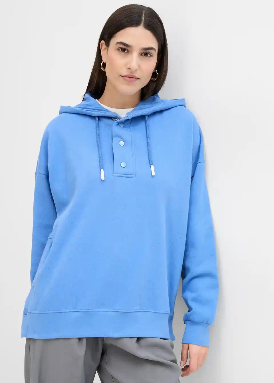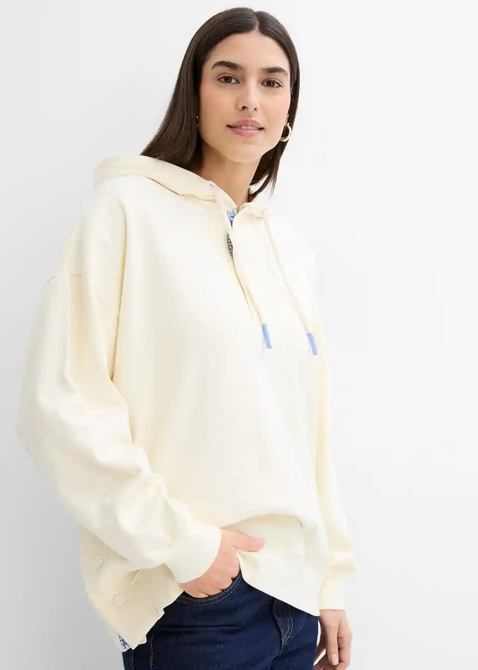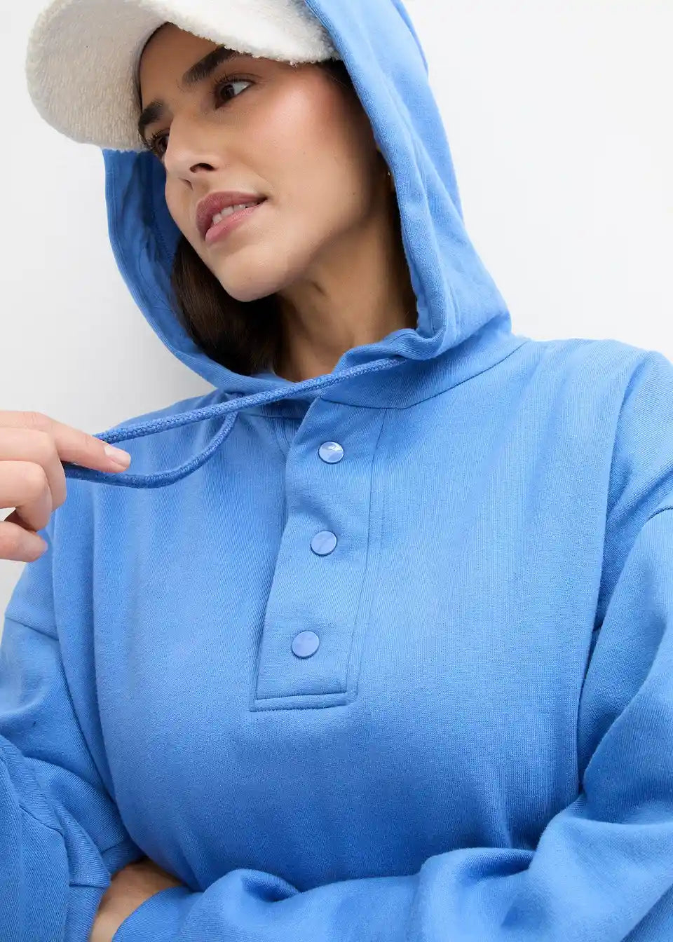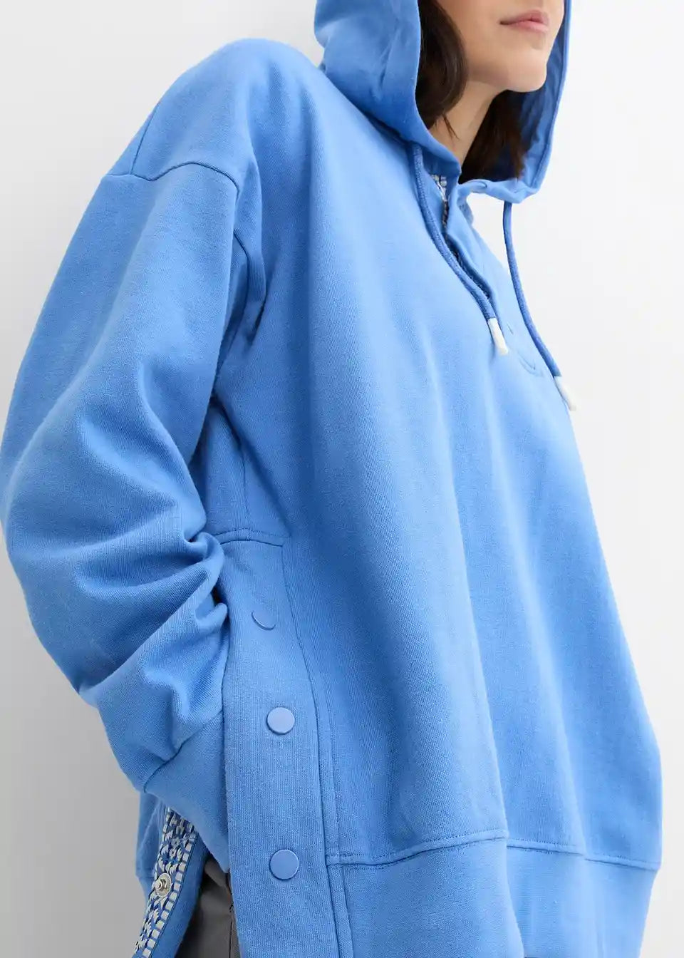 Ležeren oversize-hoodie iz čiste ekološke bombažne tkanine s stranskimi gumbi