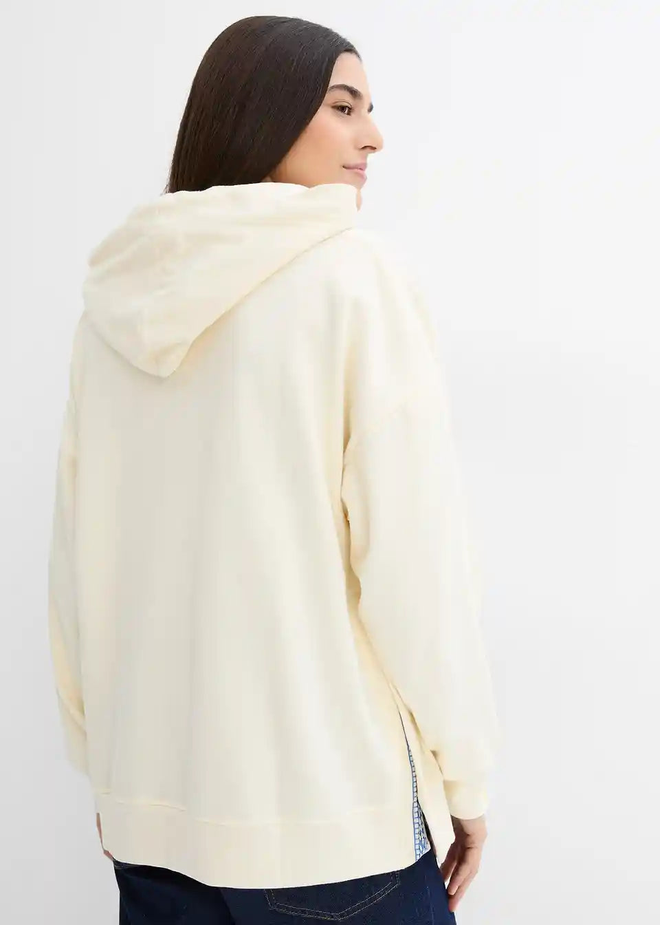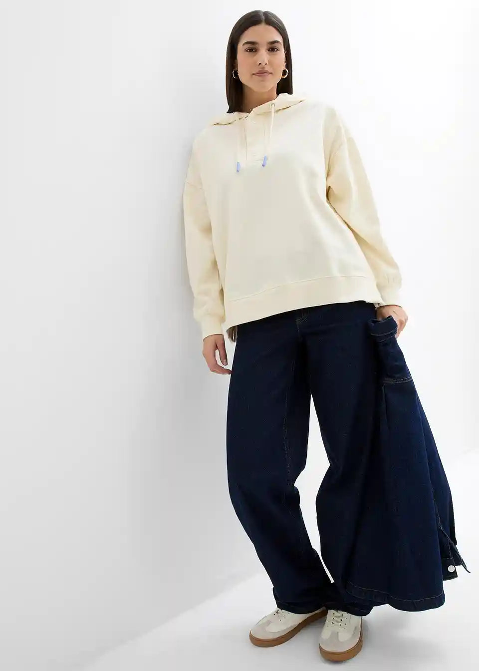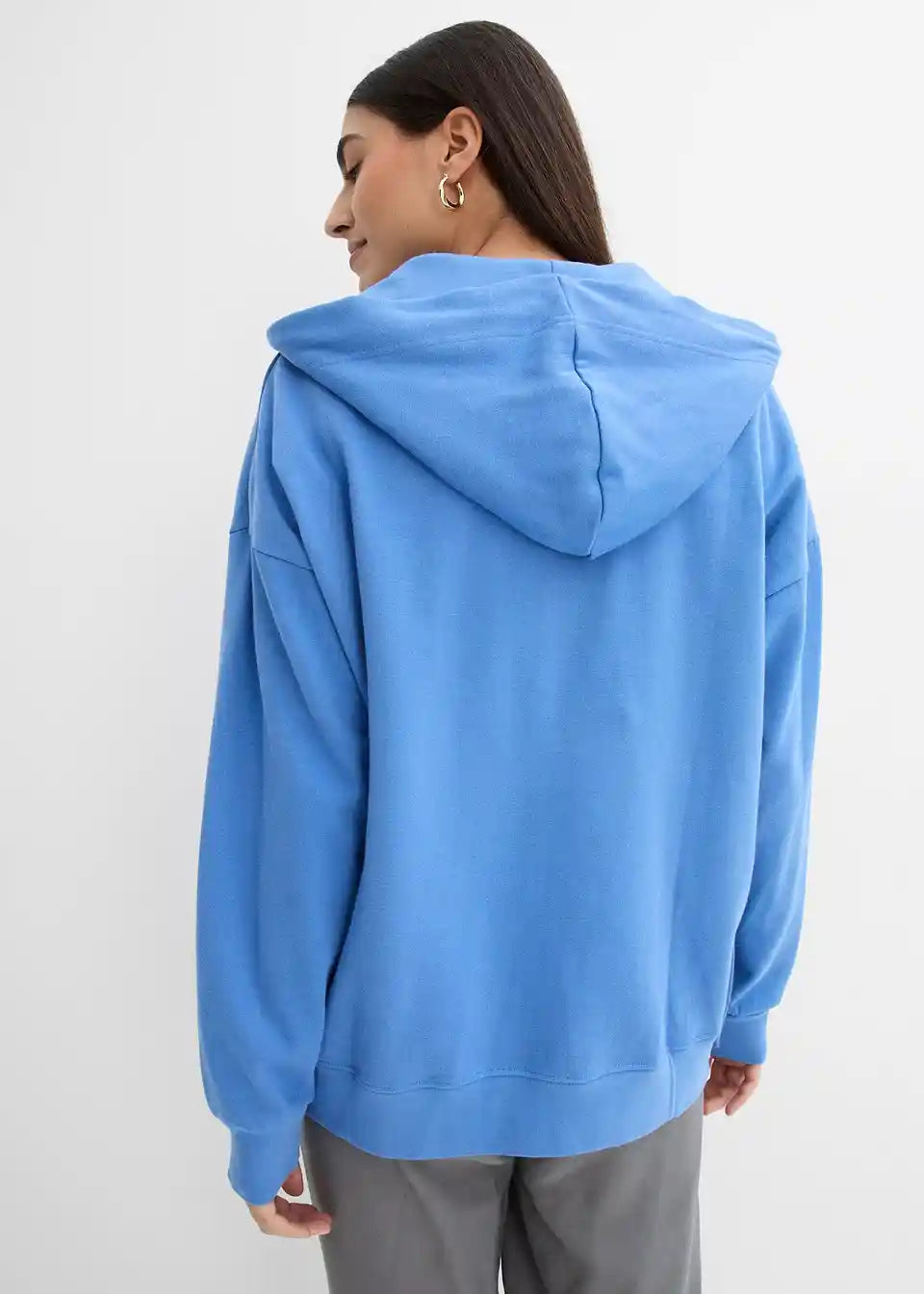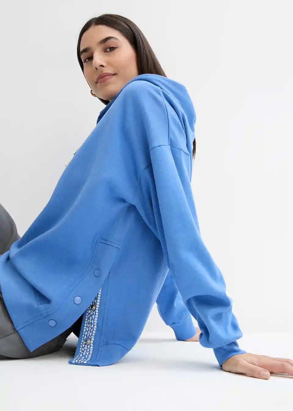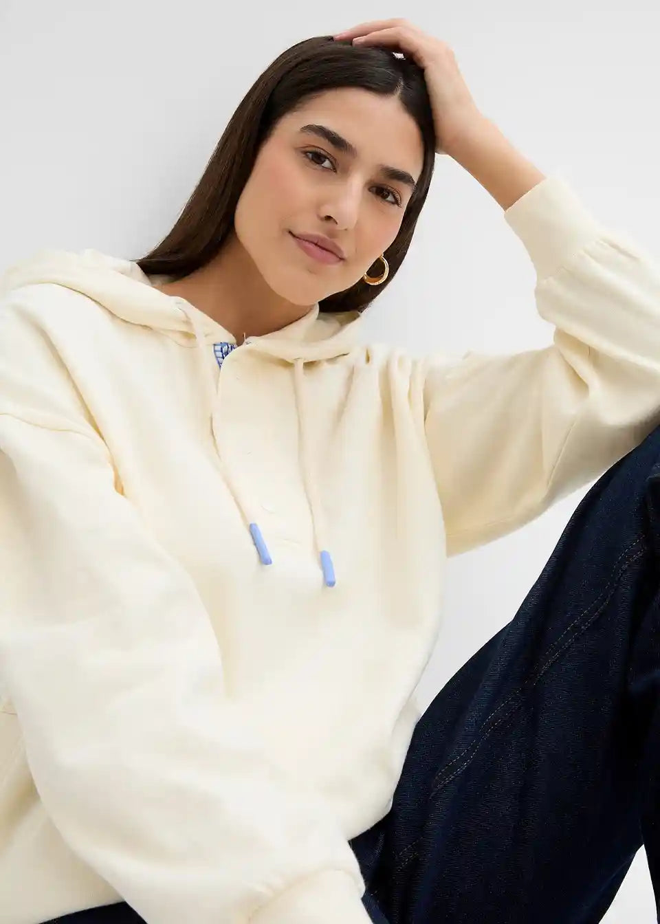 Ležeren oversize-hoodie iz čiste ekološke bombažne tkanine s stranskimi gumbi