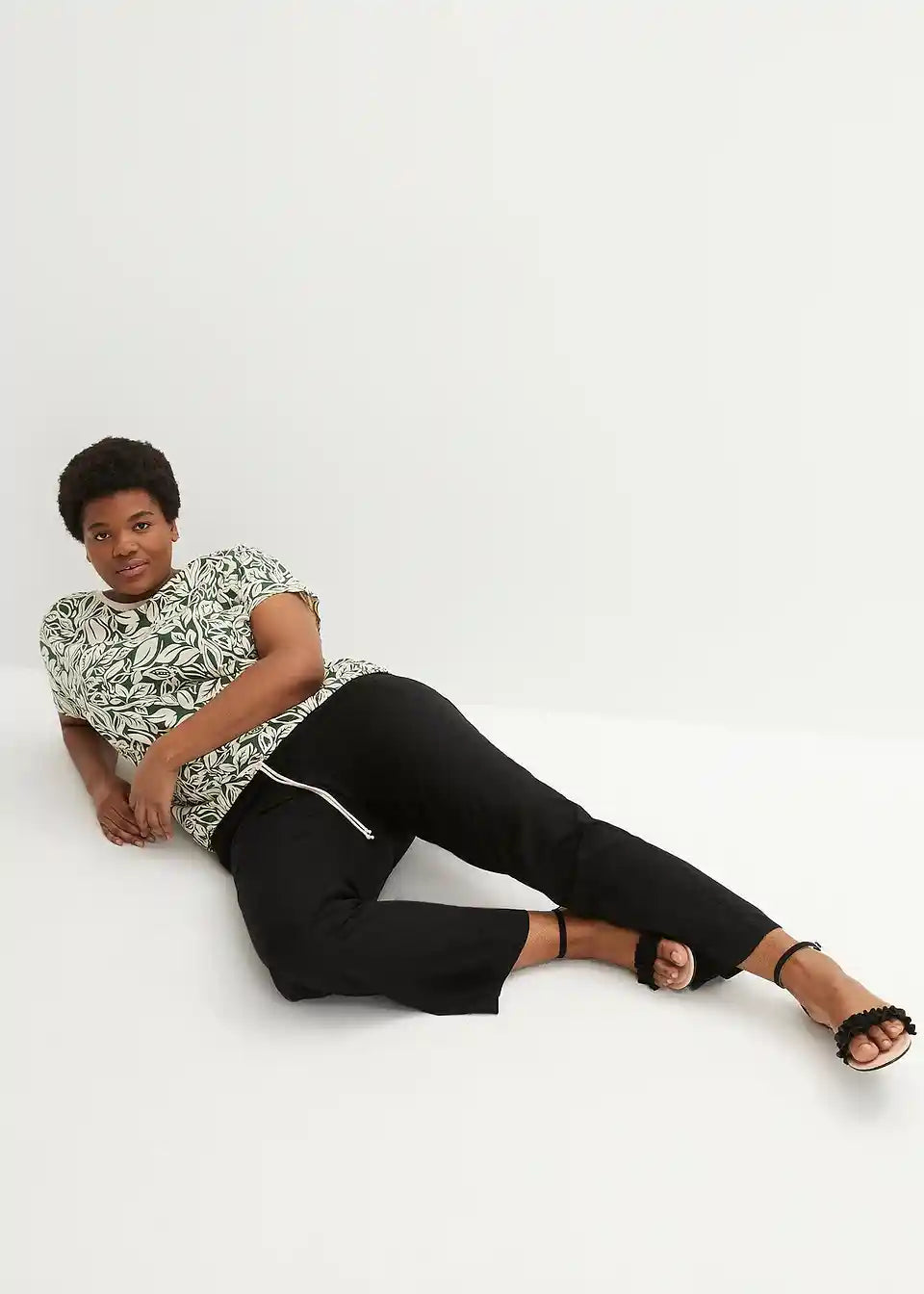 Posebnosti kroja:z vpeljano elastiko v pasu z naborki, za zakriti trebušček