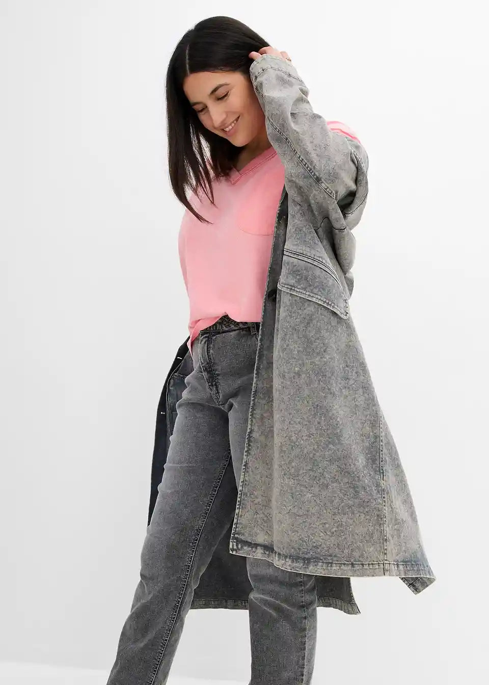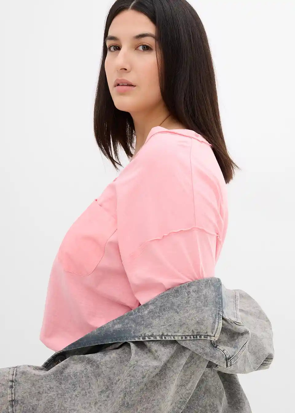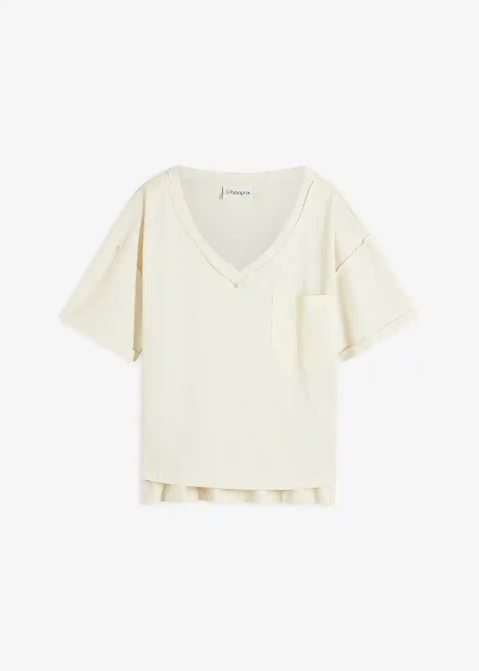 Trendovska Oversized majica z V-izrezom in našitim žepom