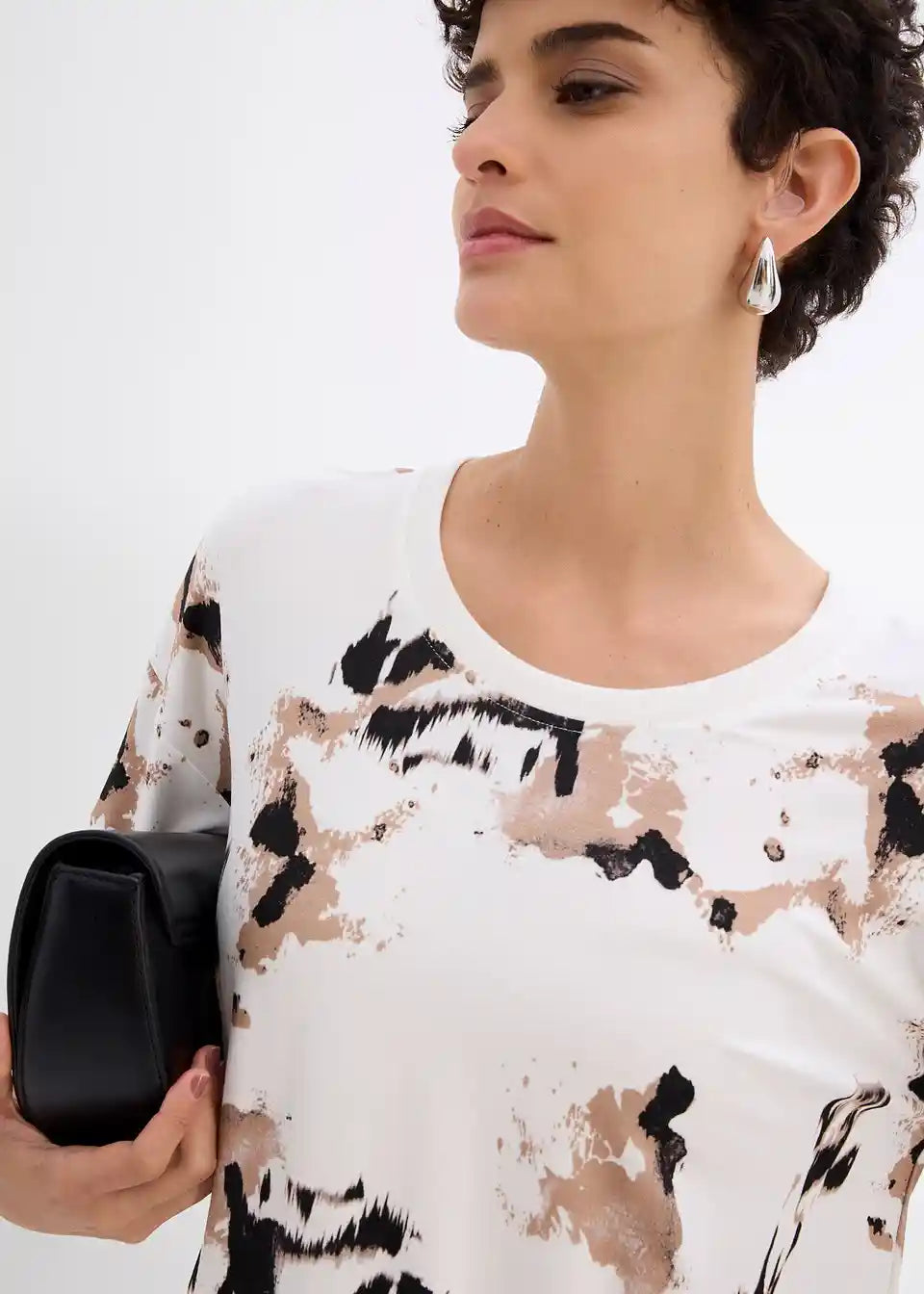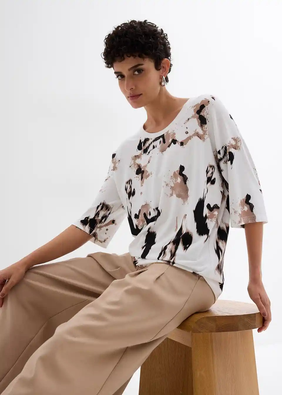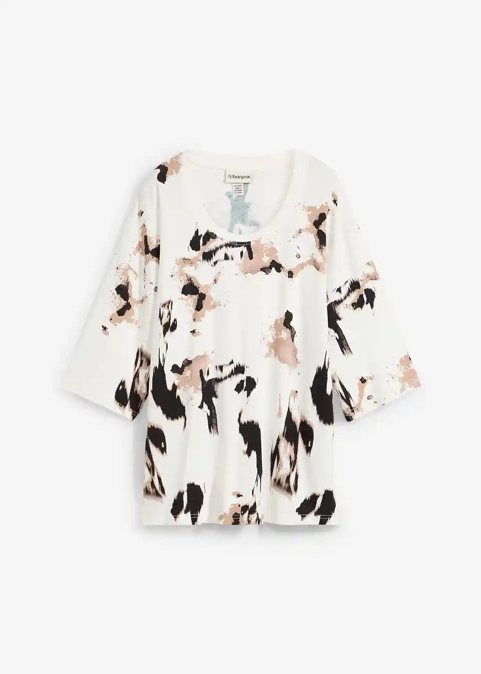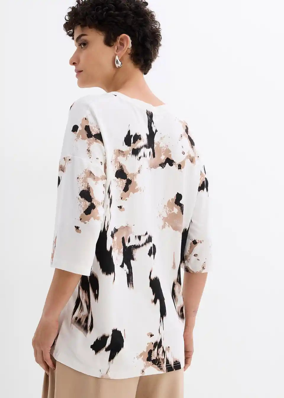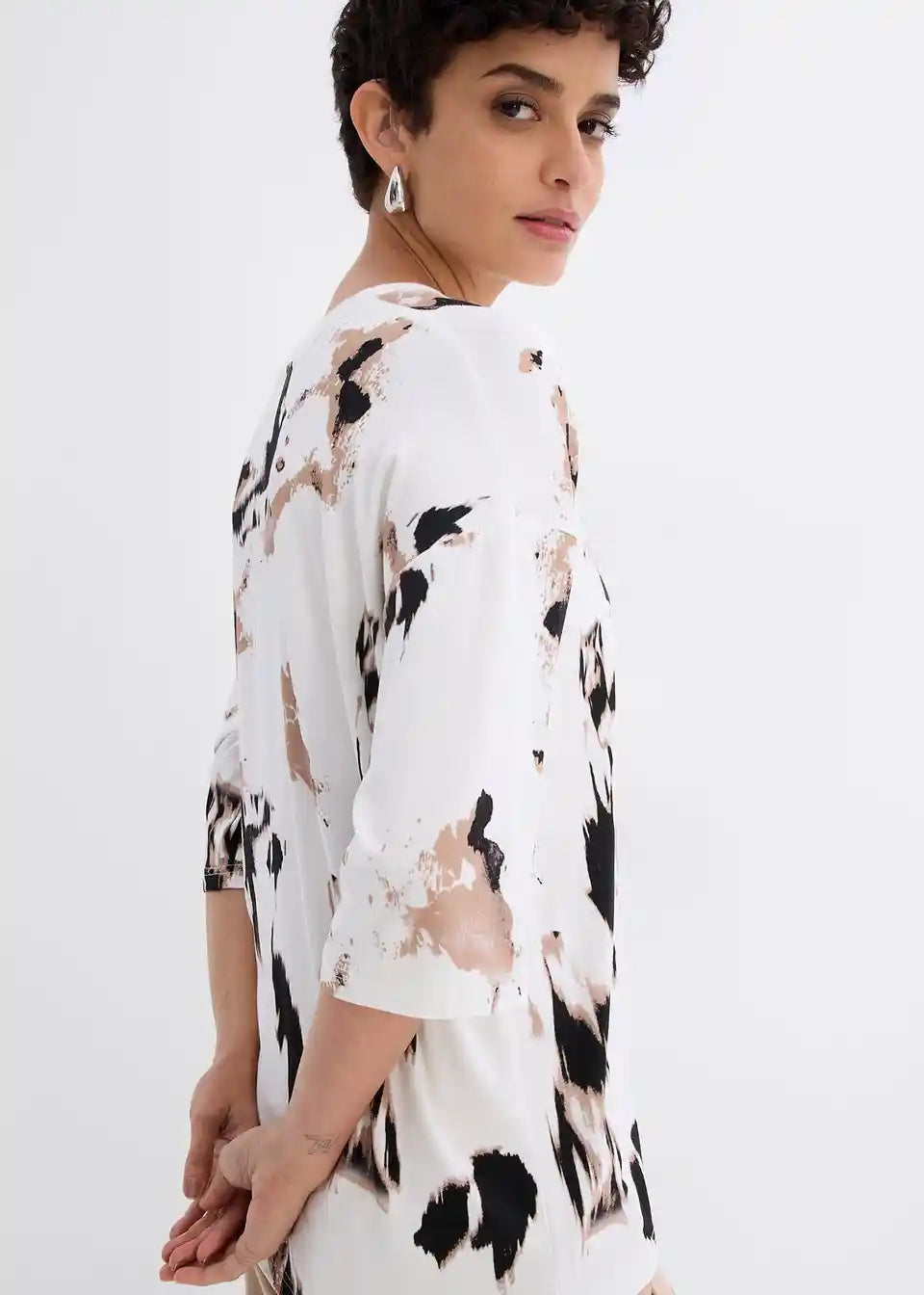 Ohlapna majica iz fine viskoze s širokim izrezom in 3/4 rokavi