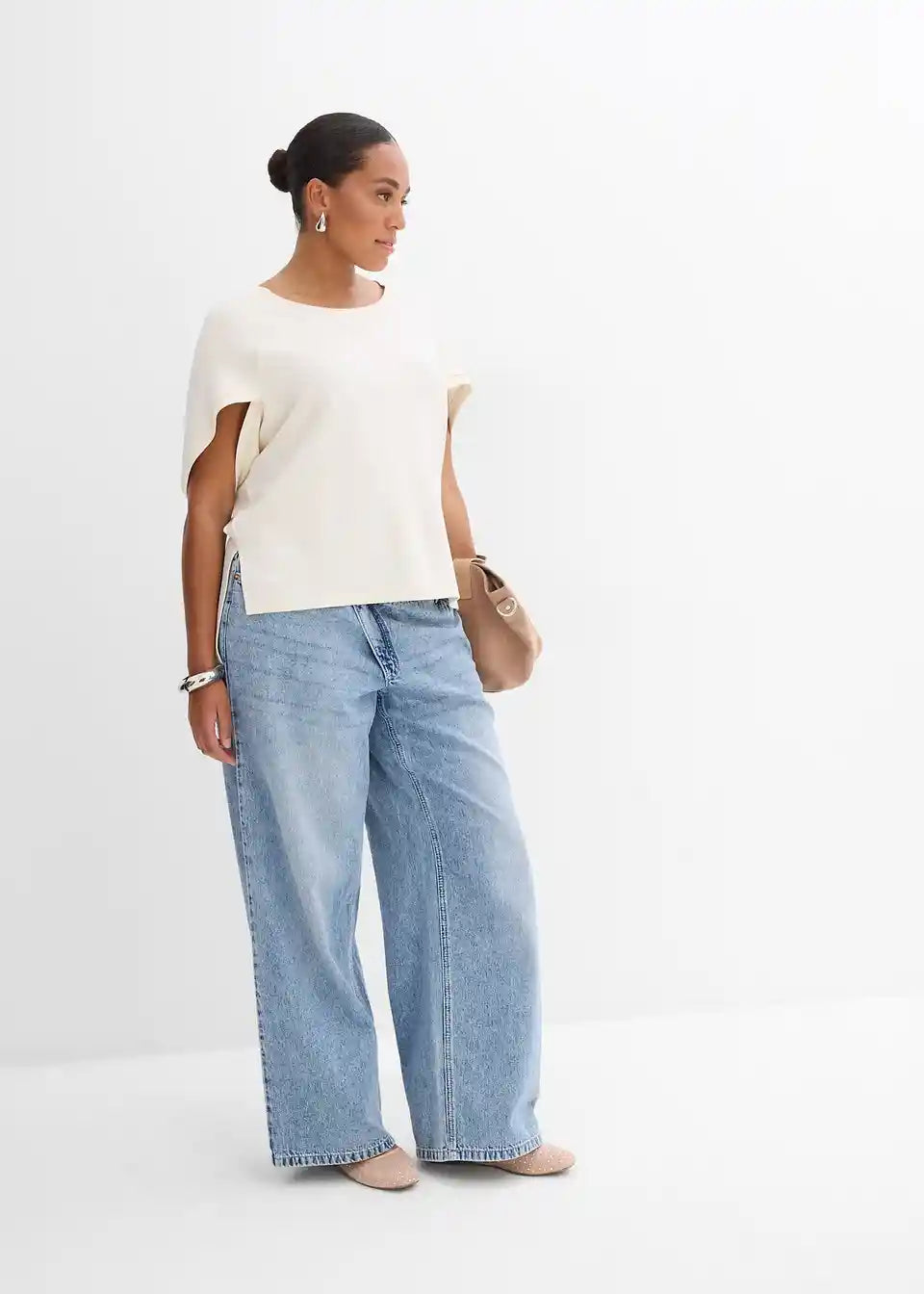 Majica sproščenega kroja s kratkimi asimetričnimi rokavnimi vložki