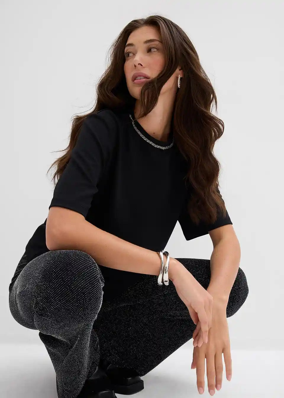 Udobna zelo velika T-Shirt majica z aplikacijo na izrezu
