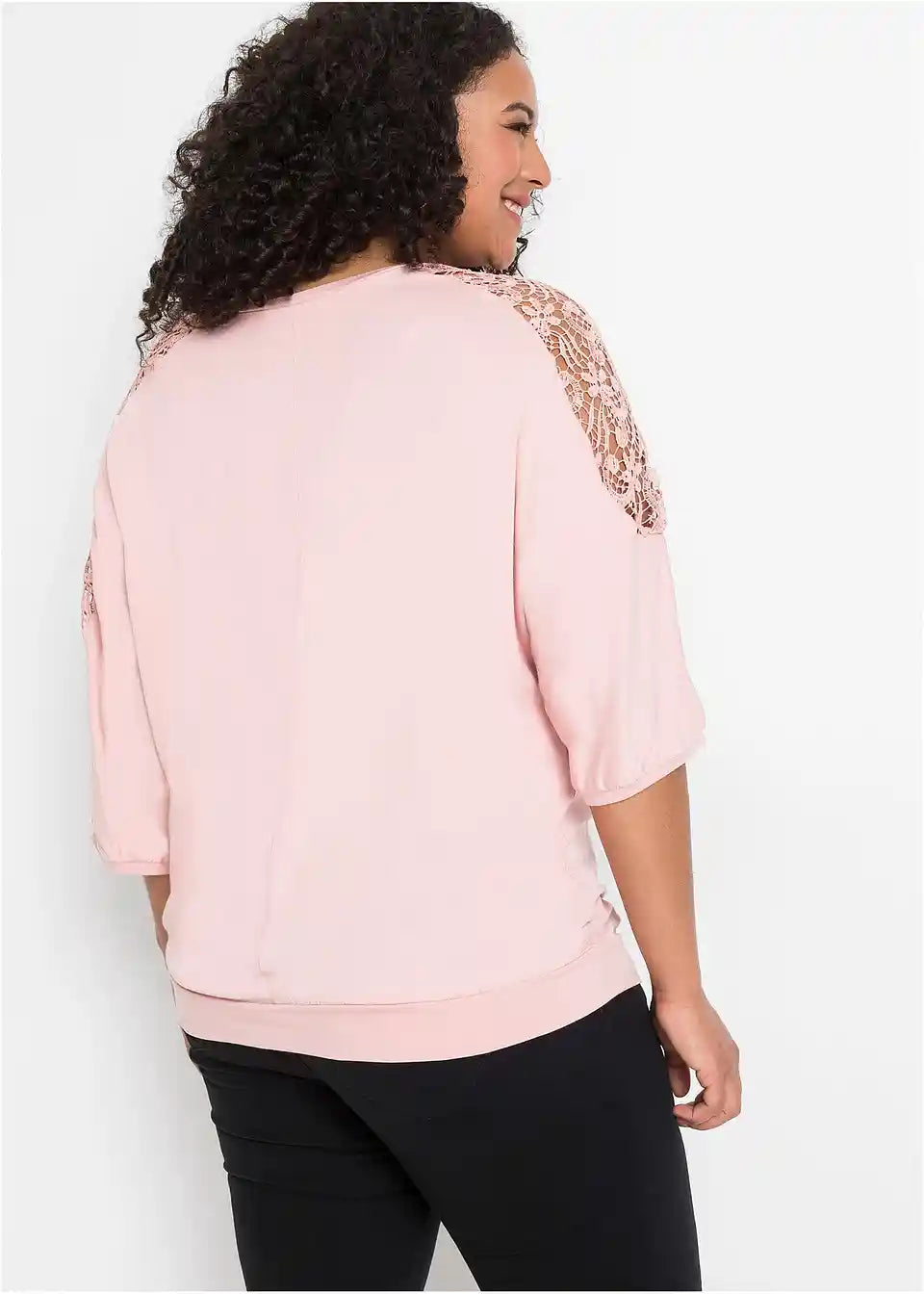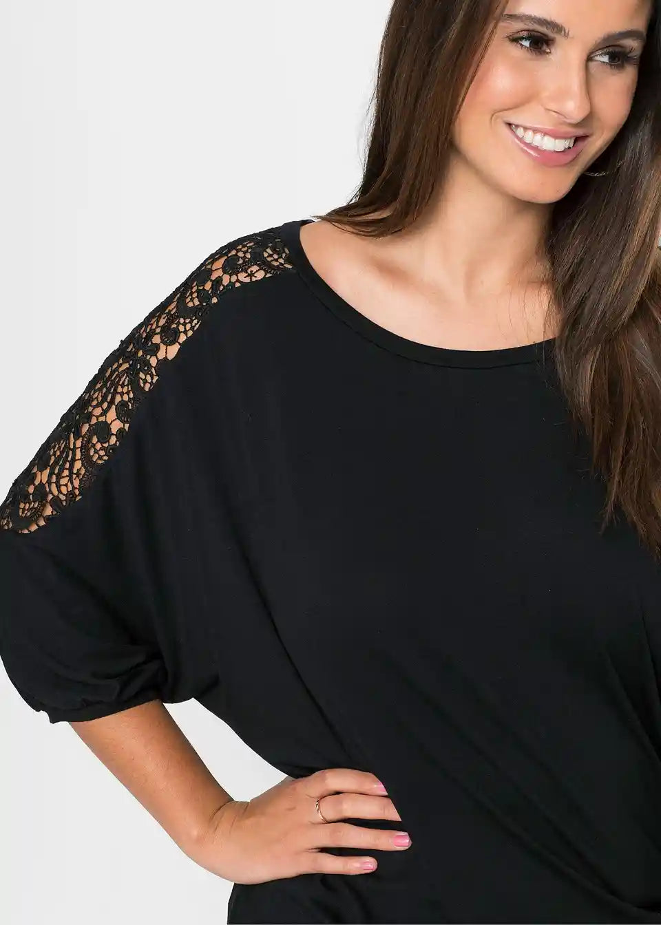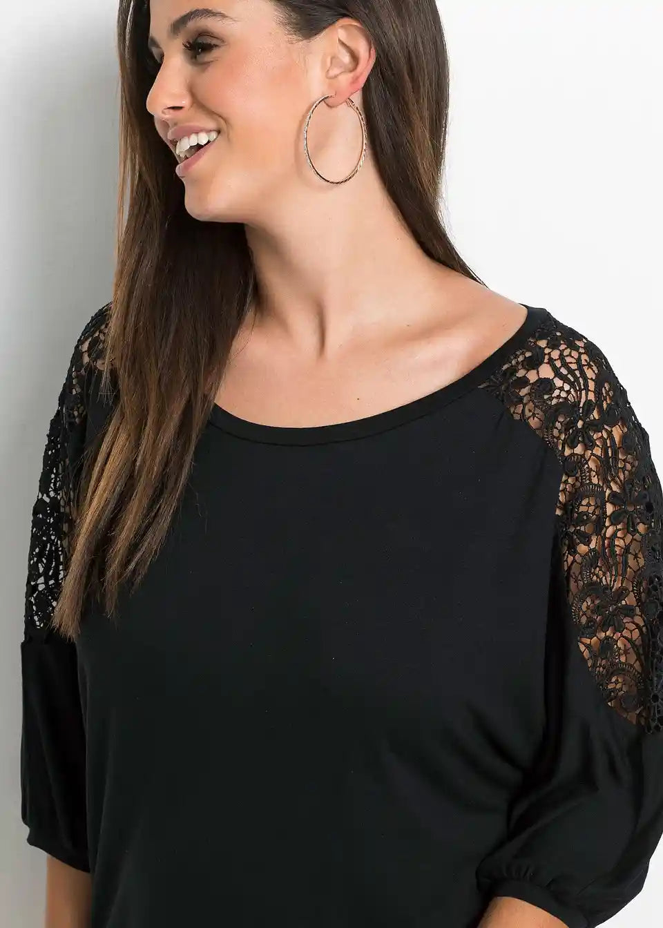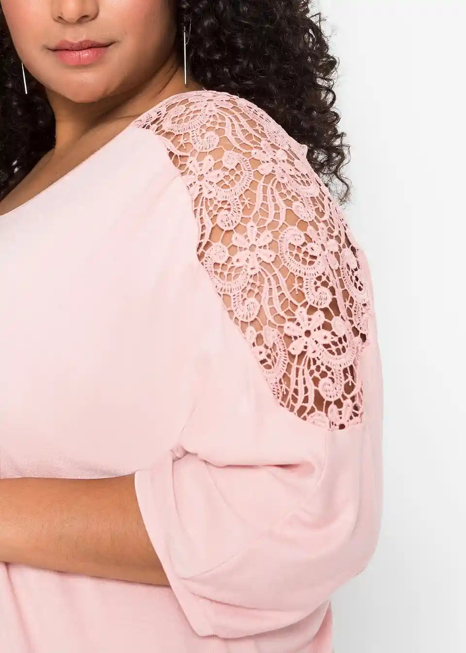 Privlačna majica Oversize z dekorativno čipko na rokavih.